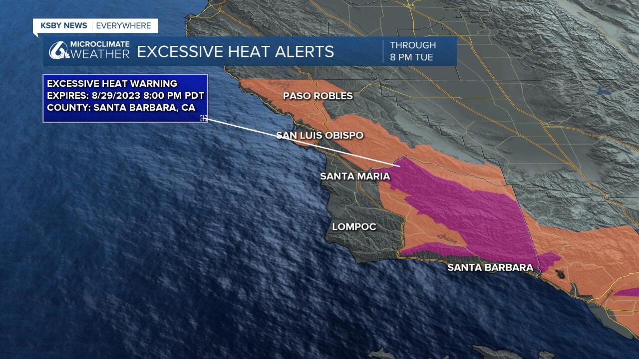 There is a heat advisory in place for much of the coastal valleys and the western portions of the interior valleys for today and Tuesday. Additionally there is an excessive heat warning in place for the Santa Barbara County interiors. These are both in place through 8 p.m. Tuesday.