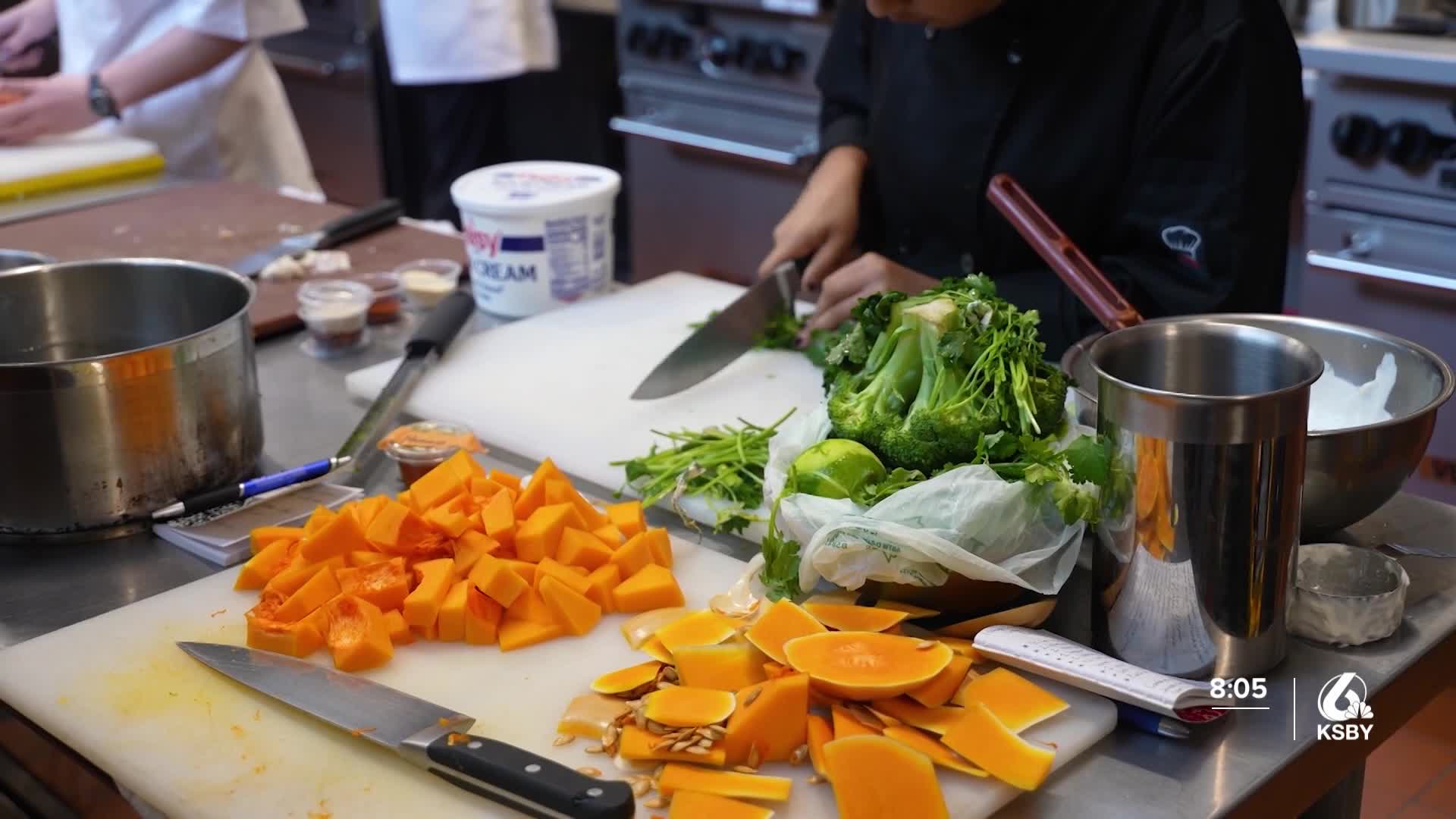 Two weeks before the competition, each team received a box of produce and had to create a recipe using at least four ingredients in the box and boneless chicken. During the competition, students had one hour to create and plate their dish, using at least four ingredients from the box.
