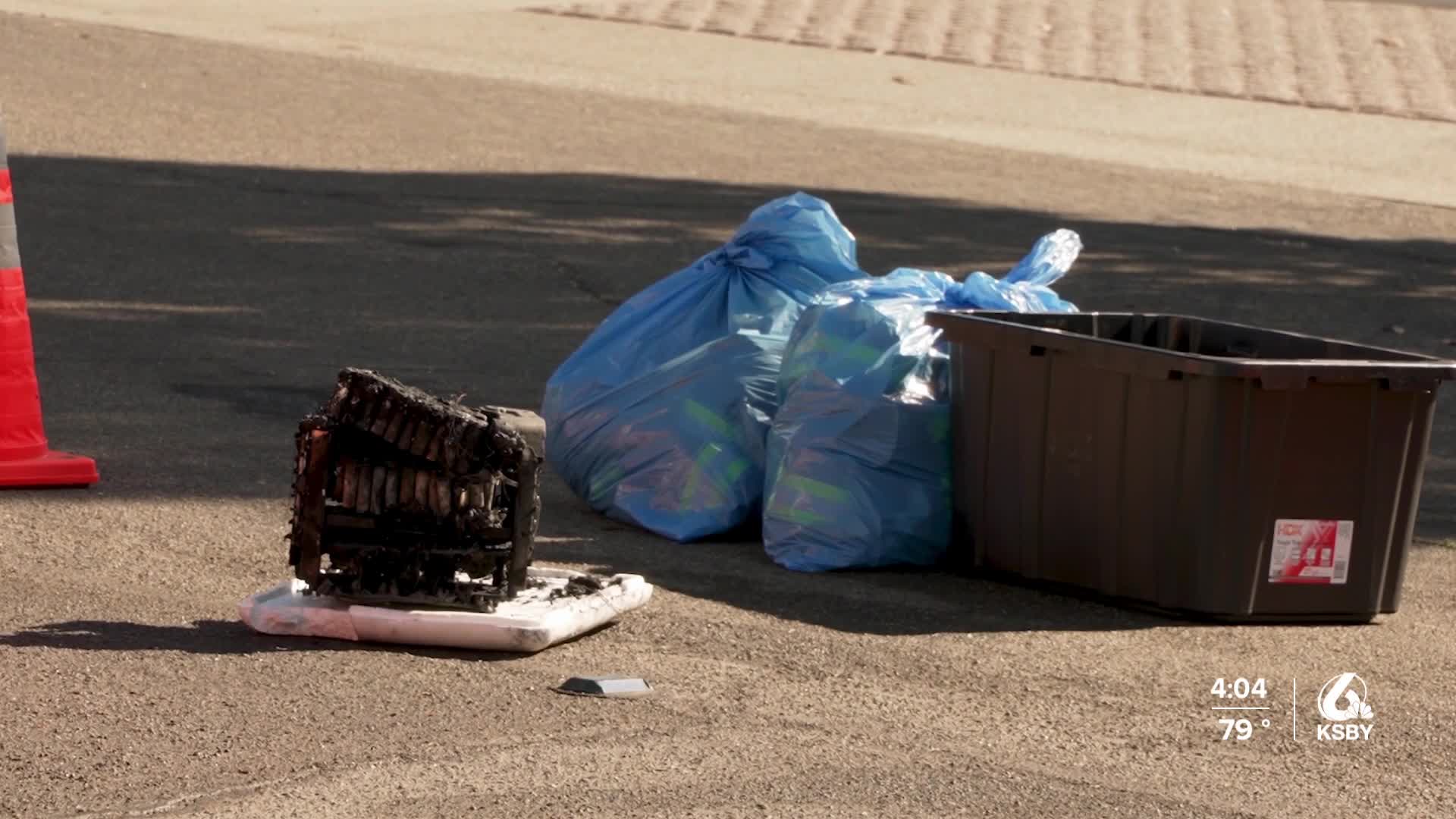 San Luis Obispo Fire Department crews are still on-site with the San Luis Obispo County Regional Hazmat team to determine the proper course of action for stabilizing and disposing of the damaged battery packs.