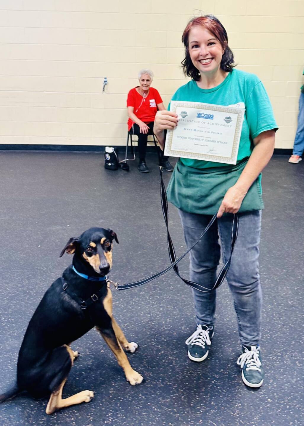 Since arriving at woods a few months ago she has been working on her tricks, recently graduating from summer school classes and getting her good girl certificate.