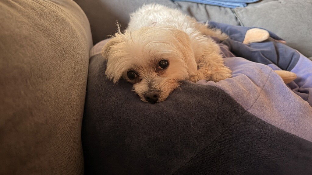 She loves nothing more than sitting on a lap. She does well on walks, in the car, and on adventures as long as she is with people.