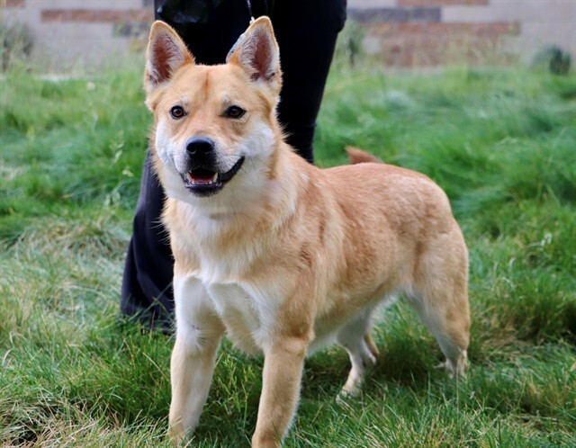 She is a gold Shiba Inu, Queensland Heeler mix, and loves to run, play, and do tricks!