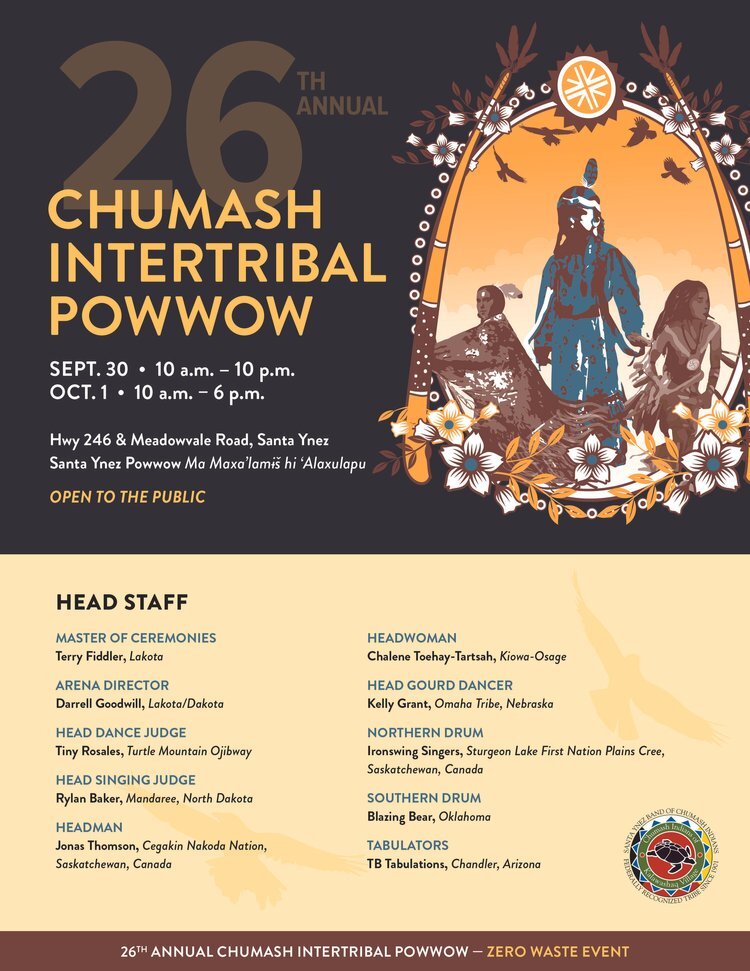 300 Native American dancers and singers will represent tribes from across California, the United States and Canada at the 26th Annual Chumash Intertribal Powwow. Ceremonies, competitions and community events last from 10a.m. to 10 p.m. Saturday and from 10 a.m. to 6 p.m, Sunday at the corner of Meadowvale Rd. and Hyw 246 in Santa Ynez. This event is open to the public, admission is $5.