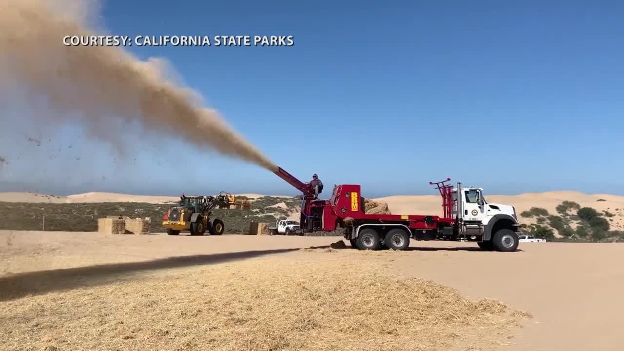 The Oceano Dunes District of California State Parks is spreading hay across parts of the dunes to try to prevent blowing dust and sand.