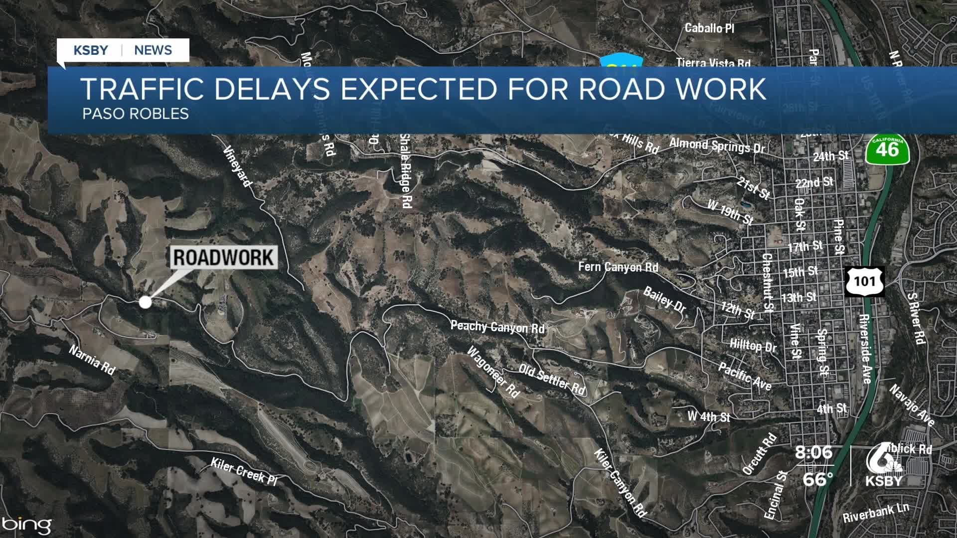 Drivers in Paso Robles can expect delays on Peachy Canyon Road as crews with the San Luis Obispo County Department of Public Works repair shoulder damage from the 2023 storm. Officials say crews will work weekdays from March 16 through April 3, between 7 a.m. and 4:30 p.m. Traffic may be delayed by up to 15 minutes.