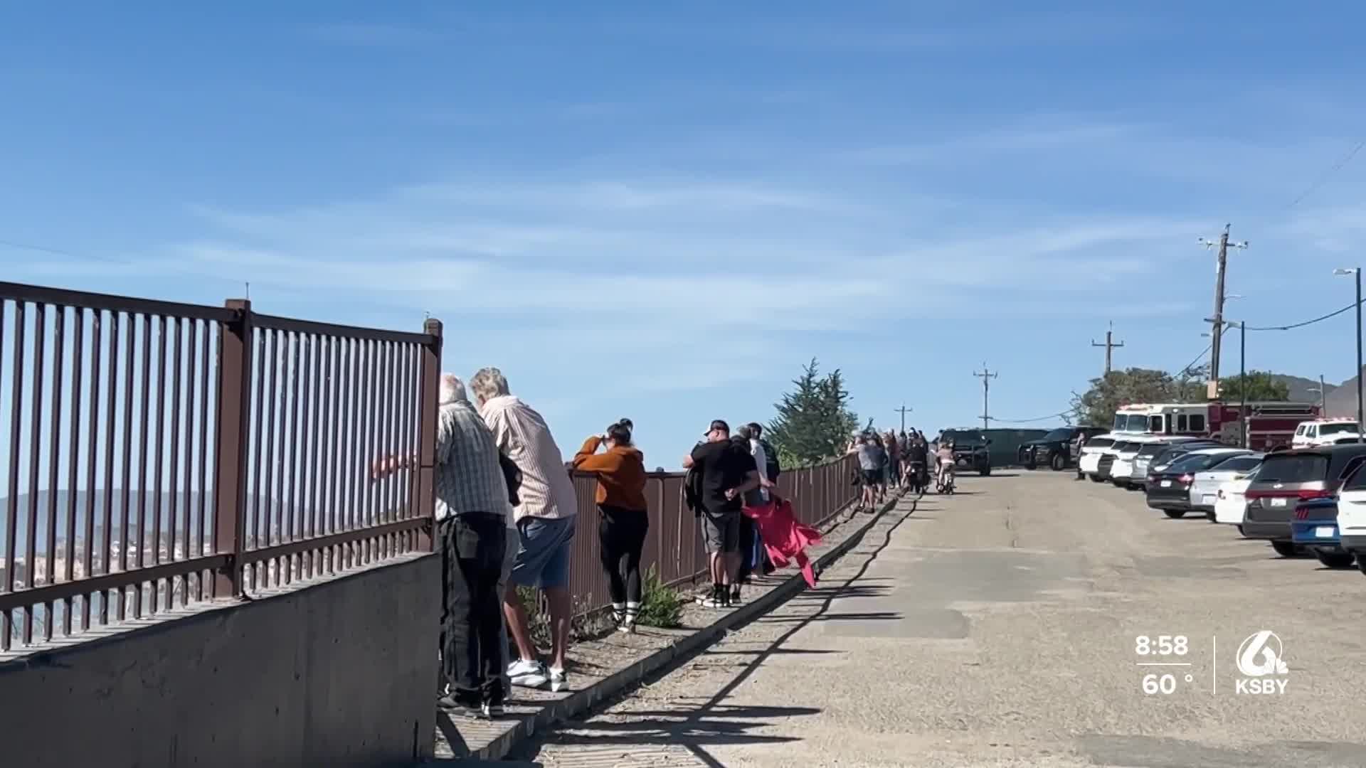 “We saw a lot of emergency vehicles going down this road and noticed a lot of people looking over the edge, looking for someone that looked really scary," Hetrick said. "The waves were incredibly dangerous looking.”