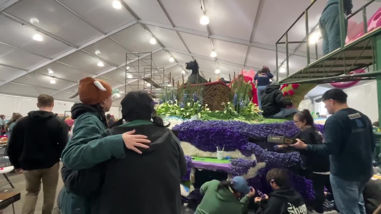 Cal Poly students are putting the finishing touches on their “Welcome to the Jungle” float ahead of the 137th annual Rose Parade in Pasadena, but with rain in the forecast, they are making some last-minute changes.