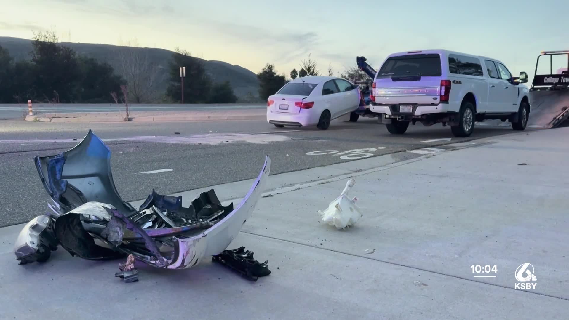 A two-vehicle crash on the Los Osos Valley Road overpass snarled traffic on Highway 101 through San Luis Obispo on Monday.