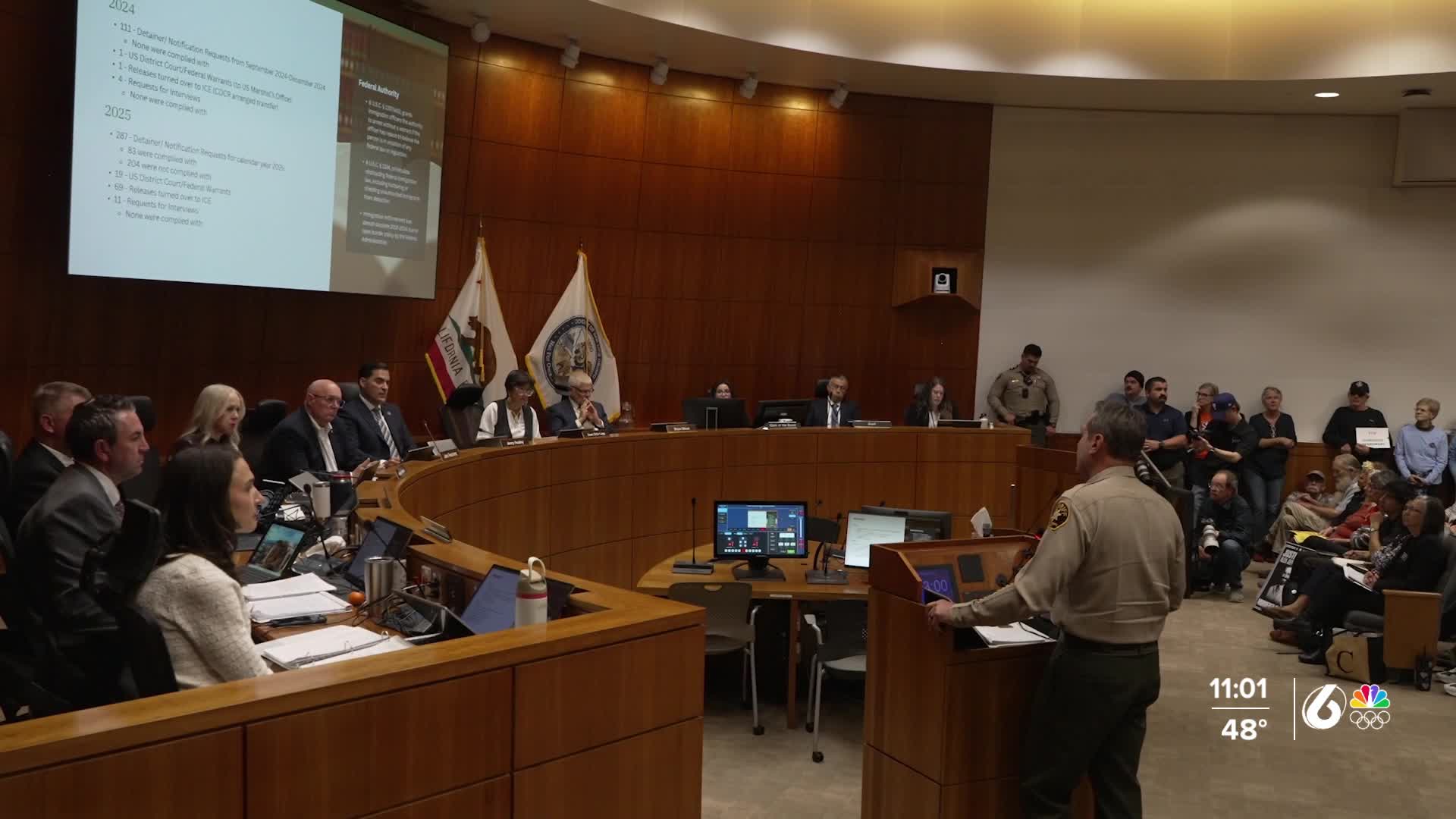 Following the sheriff's presentation, the board of supervisors asked questions, including explanations for recent incidents involving ICE in the county jail lobby.