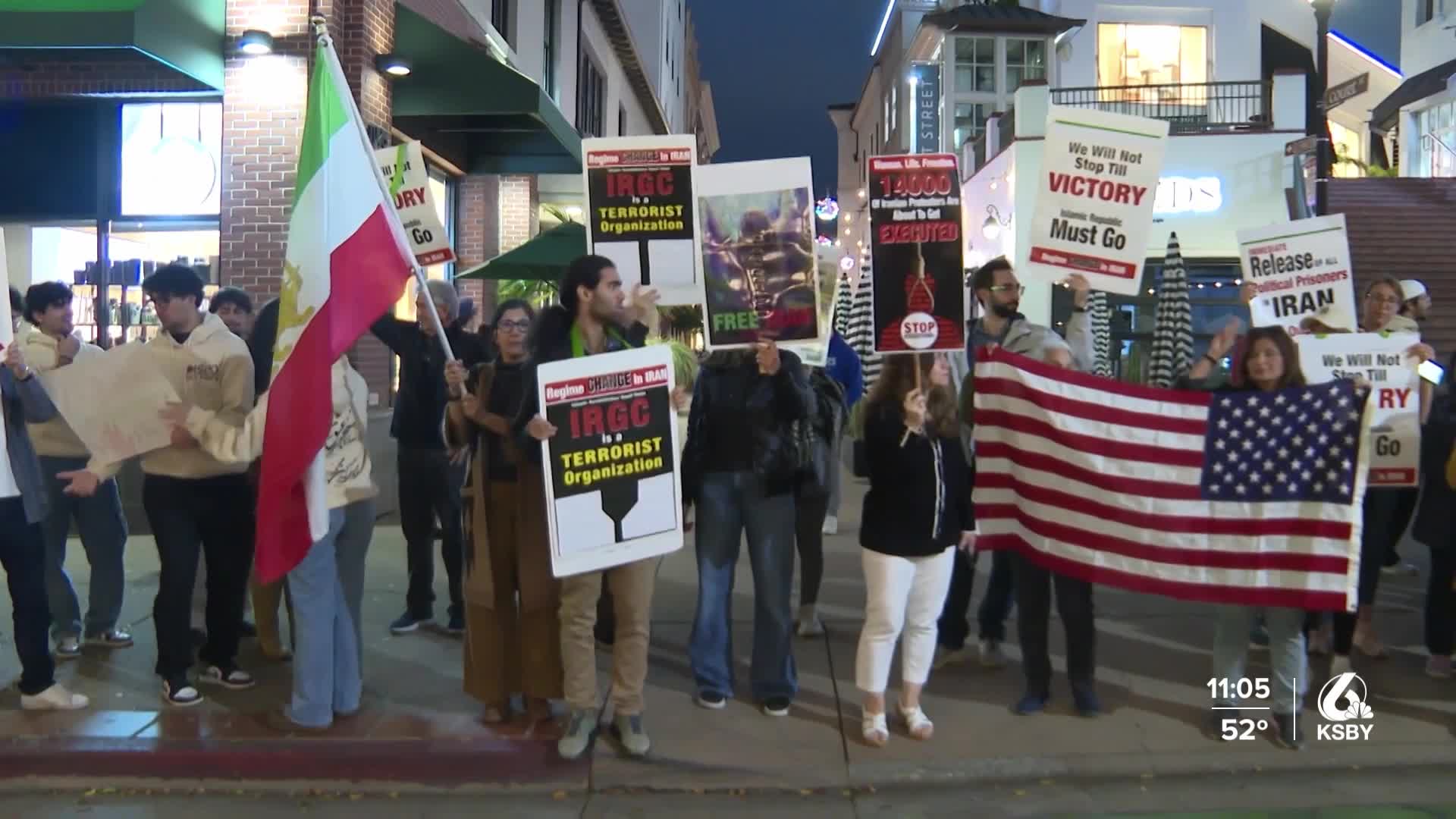Community members showed up with signs while chanting "Free Iran."