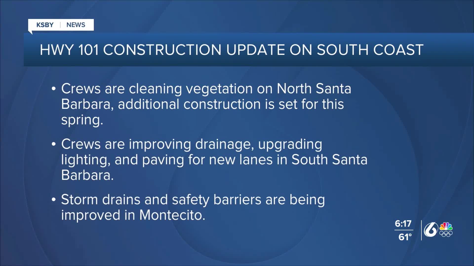 In Montecito, ongoing improvements are being made to storm drains, safety barriers, ramp infrastructure, and bridges at Romero, San Ysidro, and Oak Creek.