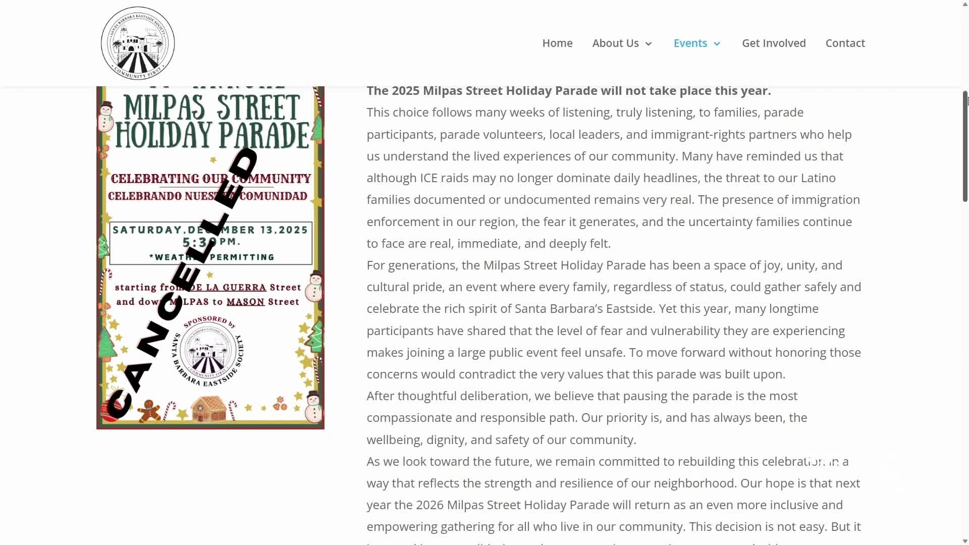 The Santa Barbara Eastside Society has canceled the 2025 Milpas Street Holiday Parade due to concerns over immigration enforcement, according to the organization's website.