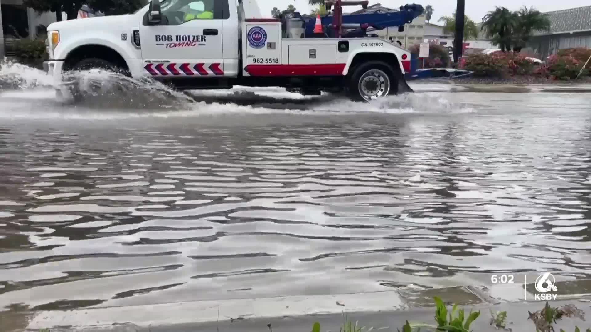 Santa Barbara Police Commander Chris Payne said that when there is significant rainfall, it’s not uncommon to see flooding like this on certain low-lying streets around downtown and that over this weekend, it was about managing the impacts through barricading unsafe streets and pulling cars out of flooded roadways.