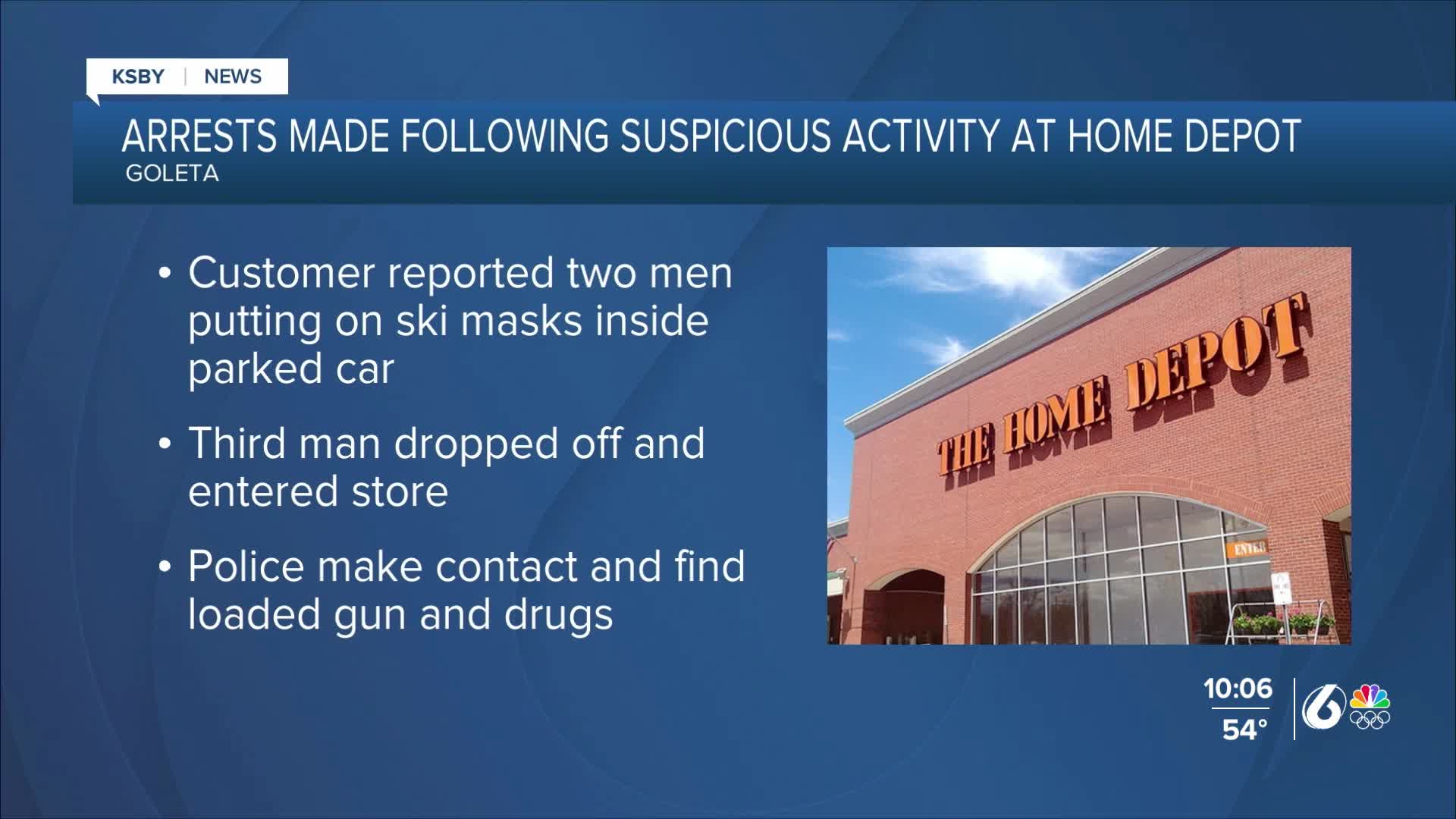 Santa Barbara County Sheriff’s deputies arrested three people after responding to a report of suspicious circumstances at a Home Depot in the 6900 block of Marketplace Drive in Goleta.