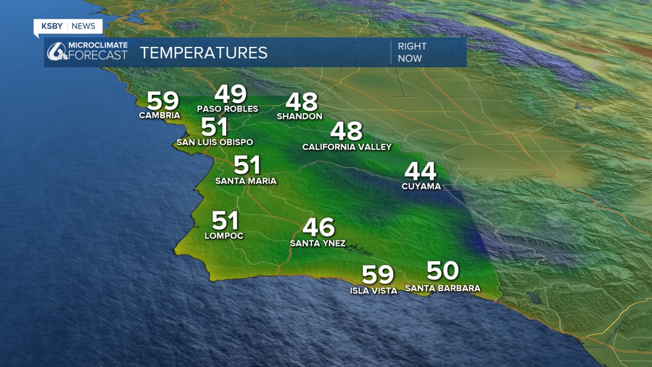 This morning, temperatures are on the cooler end, especially inland. Here's a look at our temperatures from early this morning.