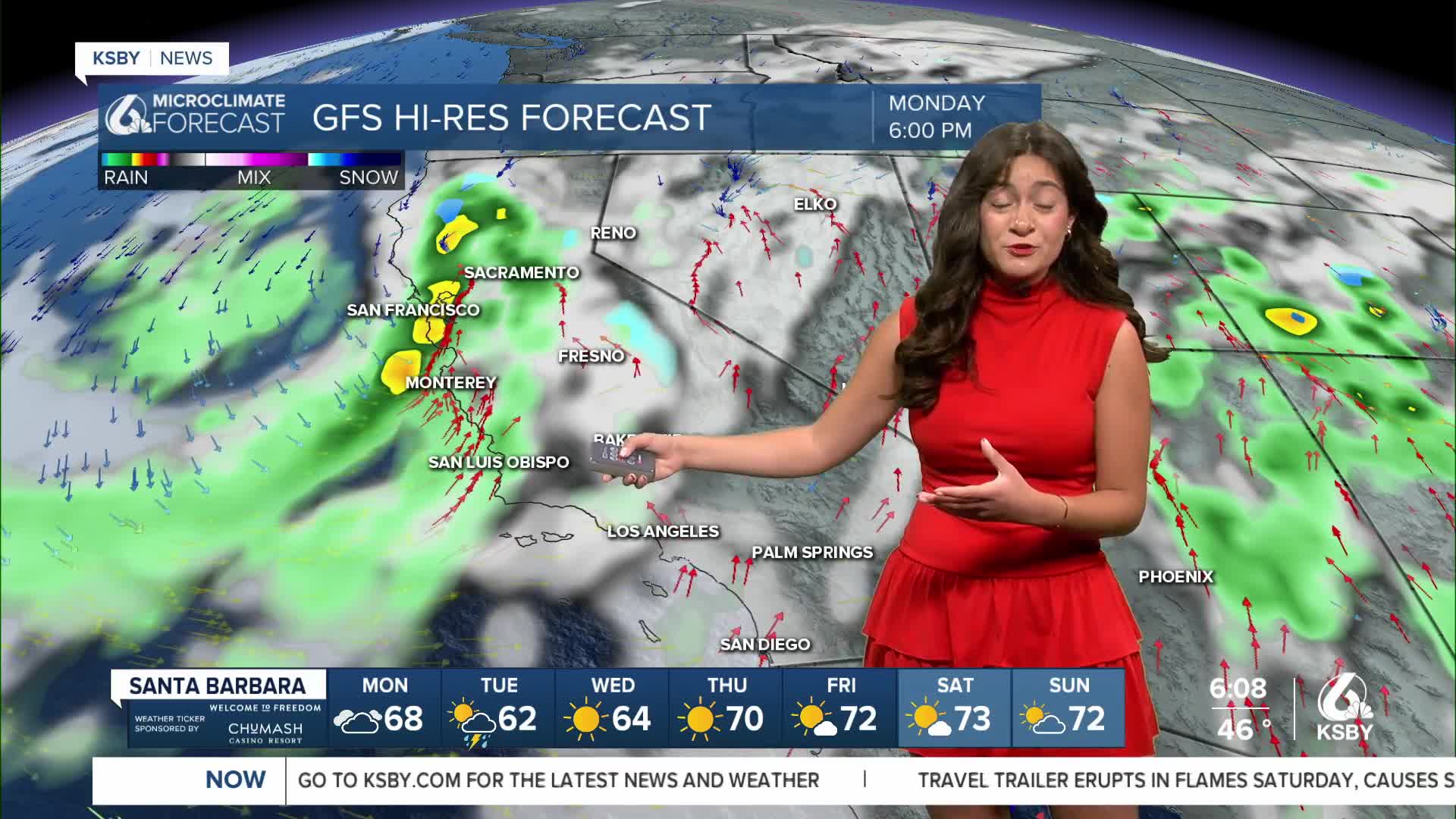 Starting Monday afternoon, a cold front will reach the Central Coast, marking the onset of the storm. This will begin with clouds but turn quickly to rain. This will start in northern San Luis Obispo County in the early afternoon.
