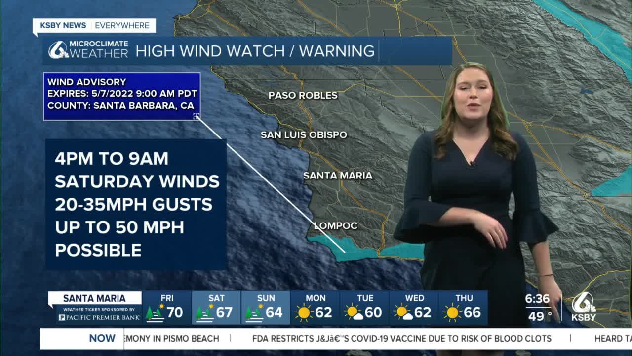 Friday afternoon winds will kick in, especially along the southcoast of Santa Barbara county where gusts up to 50 mph are possible overnight.