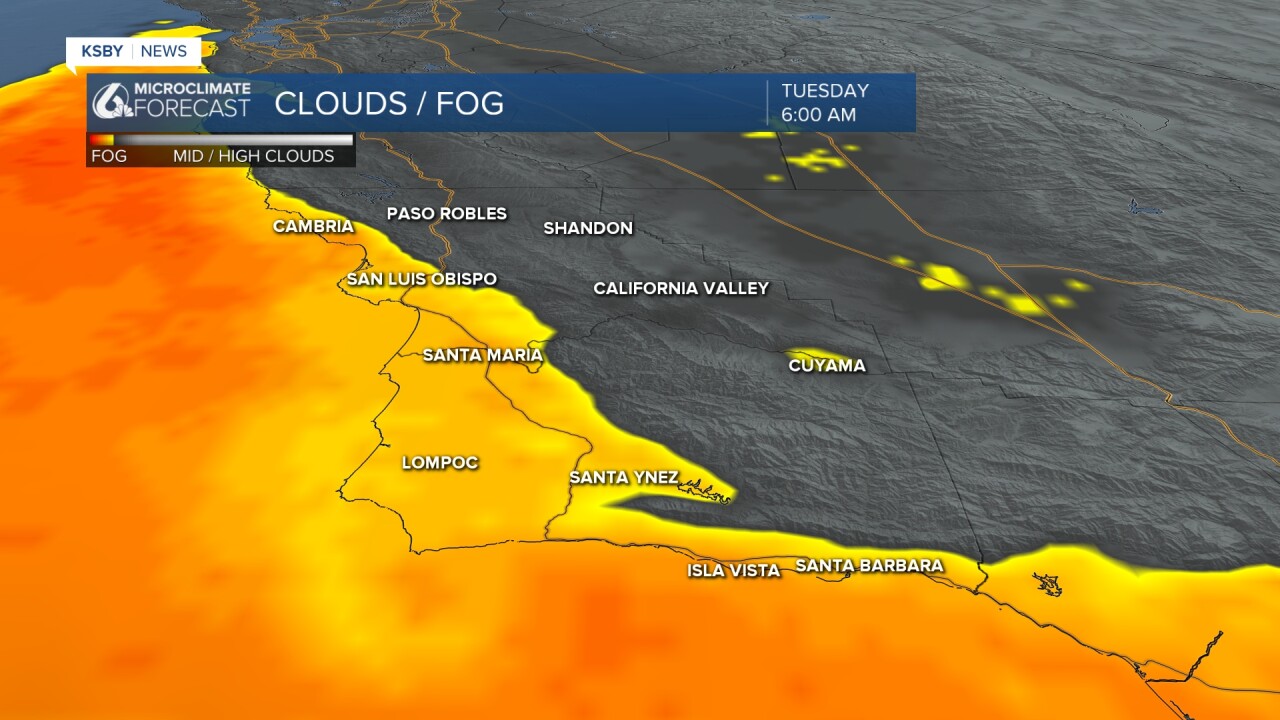The early morning hours featured some beach cloud cover as the marine layer returned to the forecast. That will be a staple through the week, but thankfully, most spots will see that cloud fully clear in the mid-morning hours. Spots like Morro Bay are more likely to battle clouds all day, but they will be high enough in the sky to avoid fog impacts most of the day.