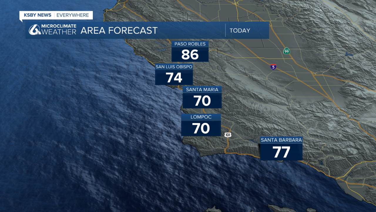 Beaches will continue to see more cool highs in the 60s with coastal valleys in the 70s and 70s and low 80s inland. Overnight lows also cool on the cooler side.