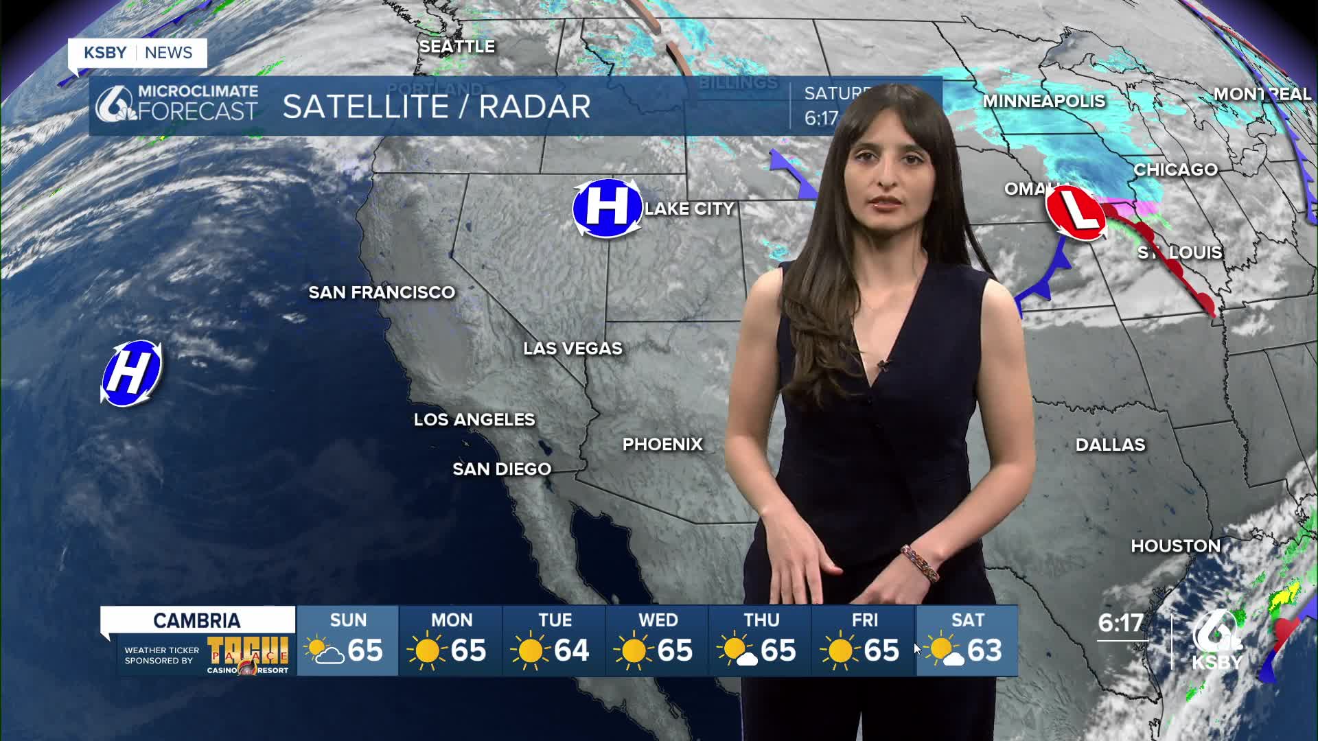 El pronóstico de los 7 días indica que Paso Robles alcanzará los 70 grados el lunes. Esto se debe a un sistema de alta presión ubicado al oeste de California.