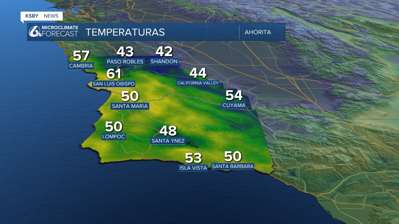 Este patrón climático se observará también durante el día. Una gran parte de la región experimentará temperaturas máximas alrededor de los 70 grados el domingo, excepto en Paso Robles.
