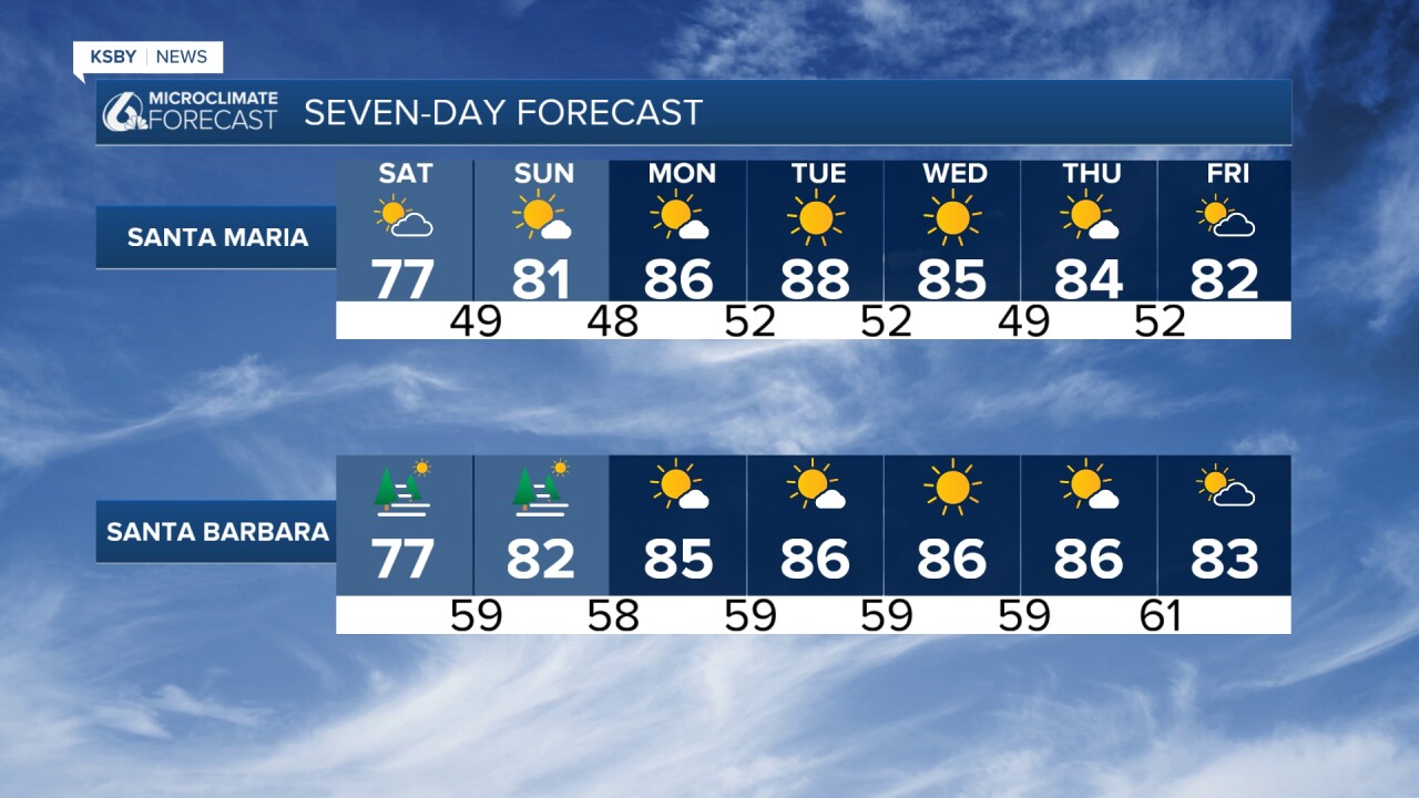 After a brutal stretch of record-breaking heat, some welcome relief is finally on the way for the Central Coast! Today marks the last day of truly record-setting temperatures from this current heat wave, but don't get too comfortable just yet. A stronger ocean breeze will bring things down a few degrees this weekend, which is enough to end the streak of heat advisories and warnings. That said, temperatures will still be running 10–15°F above normal, so it's still going to feel plenty warm out there. Saturday looks to be the coolest day of the bunch, so if you're planning any outdoor fun, that's your window!