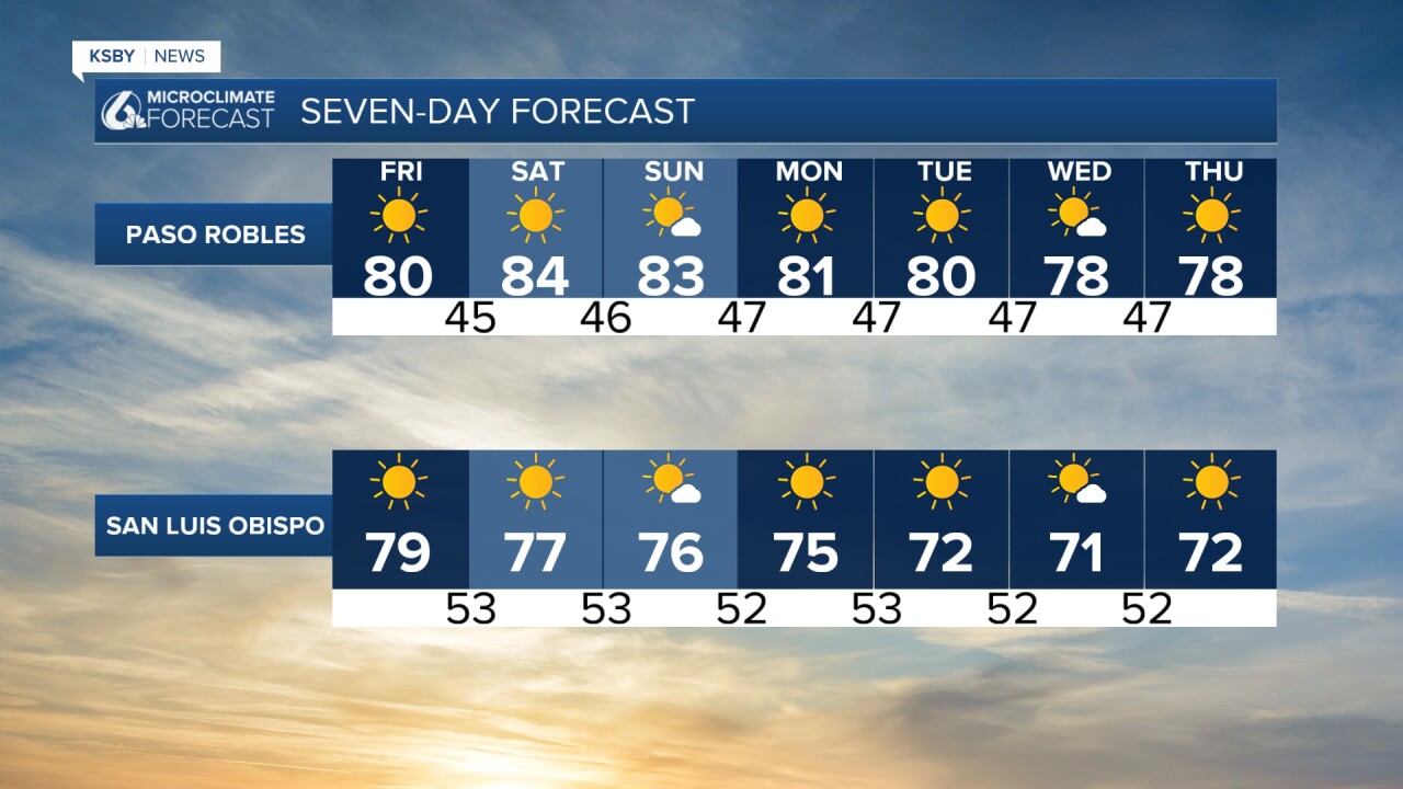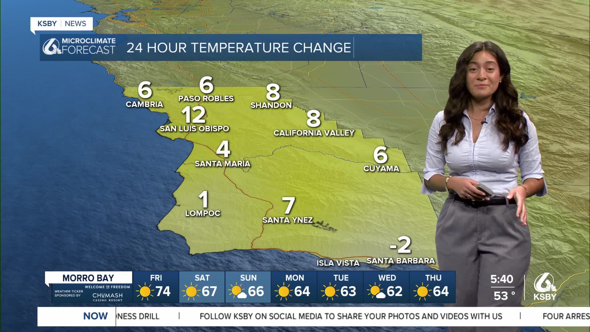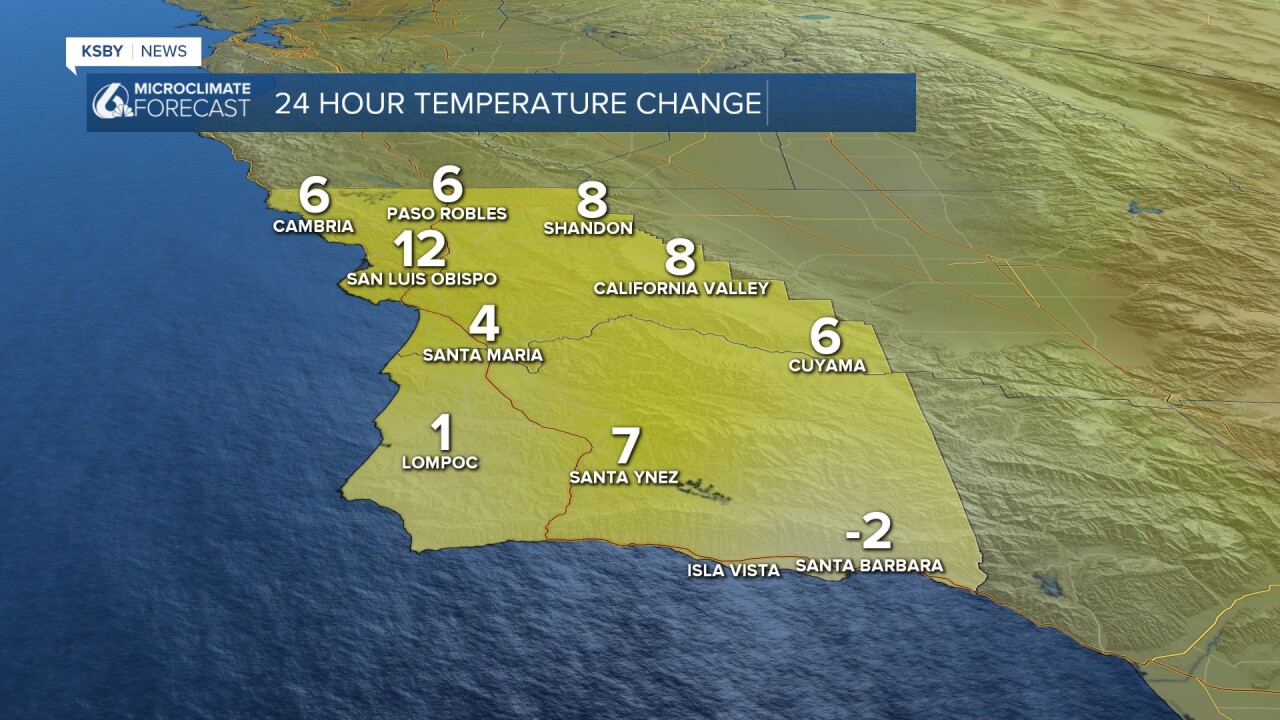 Since yesterday, we're up 12 degrees in San Luis Obispo.