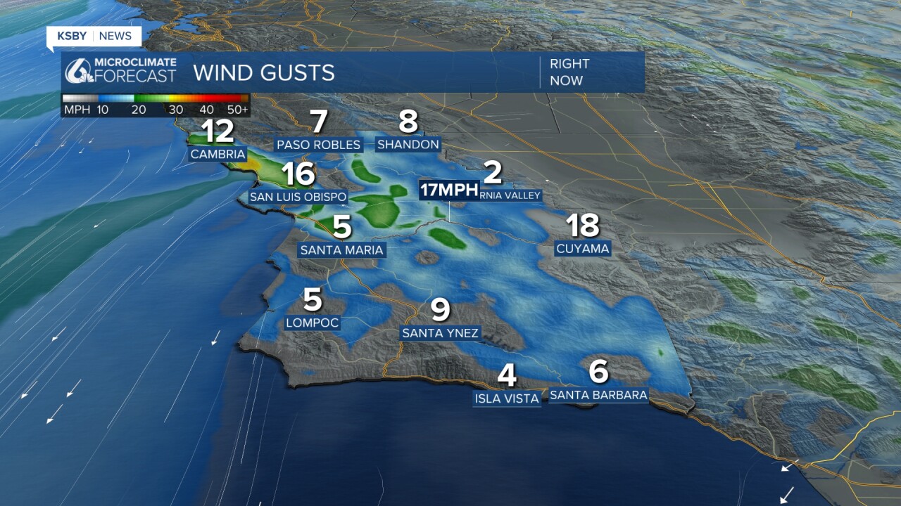 Winds will stay below advisory level criteria but will still be notable into the weekend. This is part of a widespread wind event that is bringing a light Santa Ana wind event to our south.