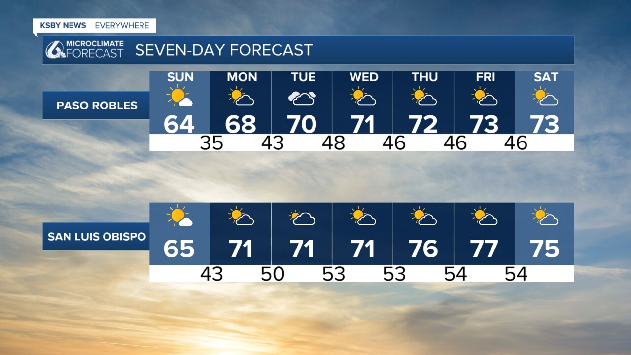 We will also see the return of our marine layer in some areas by Tuesday. Overall, next week is looking mostly dry and with seasonally above-average temperatures.