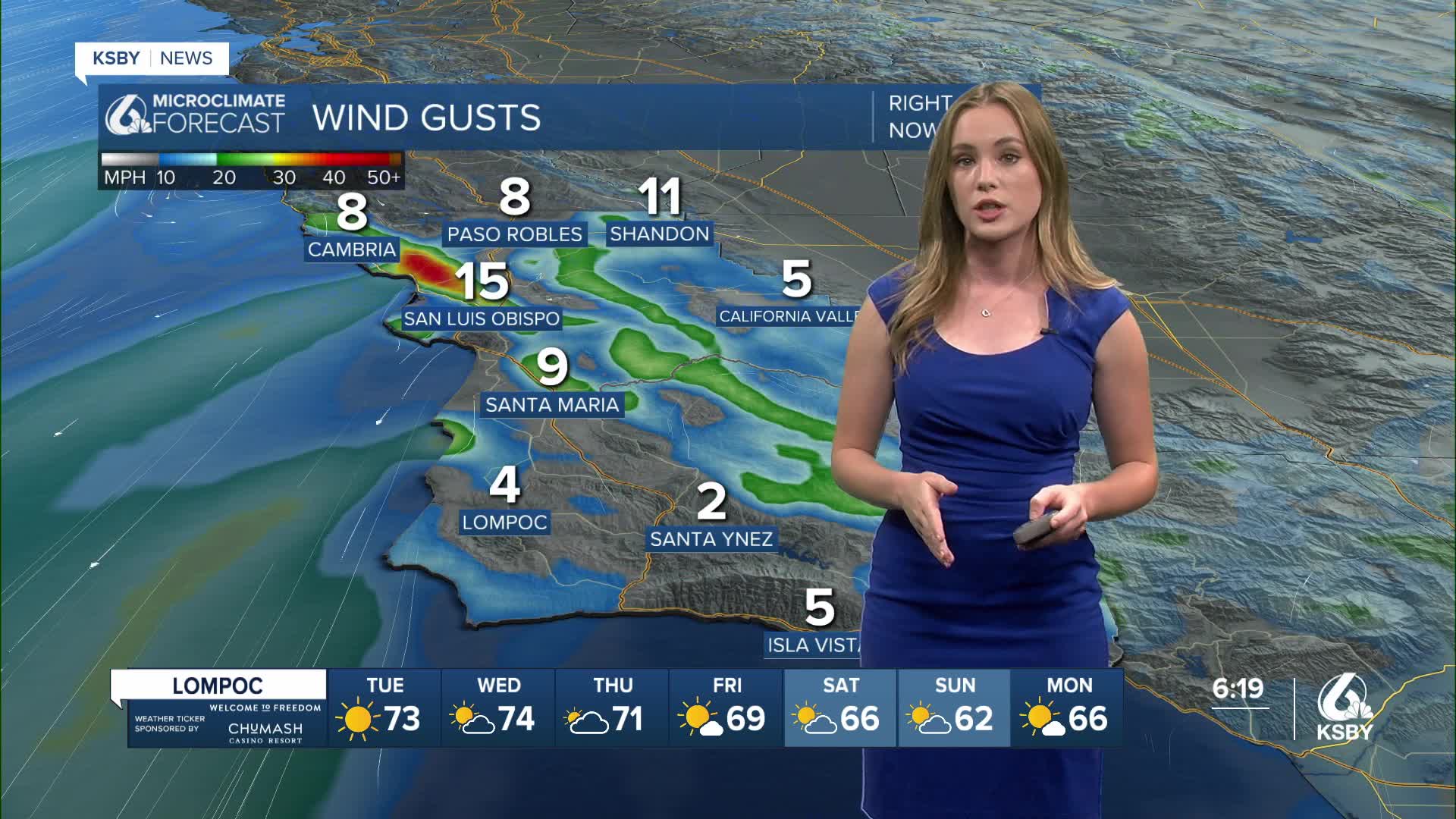 It's looking like a warm day for our region and with these warm temperatures, gusty winds are set to follow. As of this morning, major gusts are sticking to the San Luis Obispo, Santa Maria and Shandon areas. Gusts are hitting the 40 to 50 mile per hour range just above San Luis Obispo.