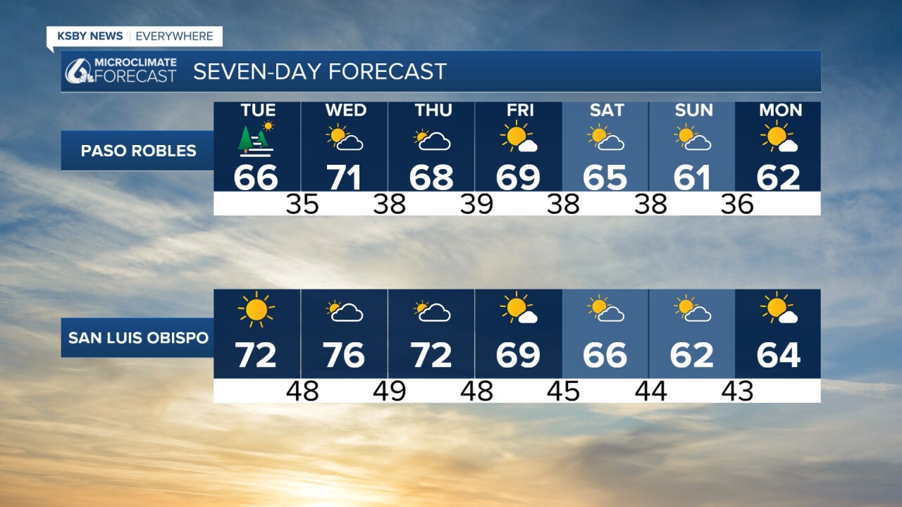 Wednesday is set to be the warmest day of the week, with a cloudy but warm Thanksgiving on the way. High 60s to low 70s with mostly cloudy skies, especially in Santa Barbara, for the holiday.