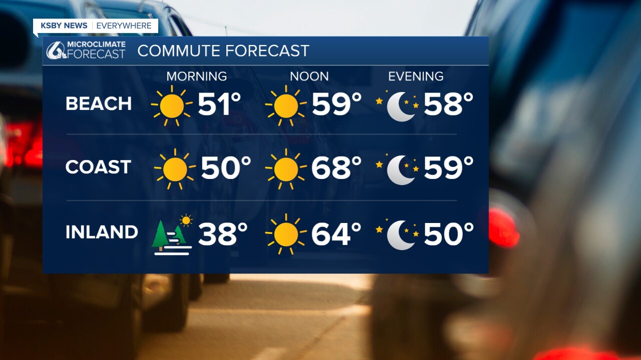 The inland areas are going to have a bit of fog this morning but it won't be around for too long. By noon, every region of the Central Coast will see clear skies. A clear evening with some cooler temperatures in the 50s is on the way.