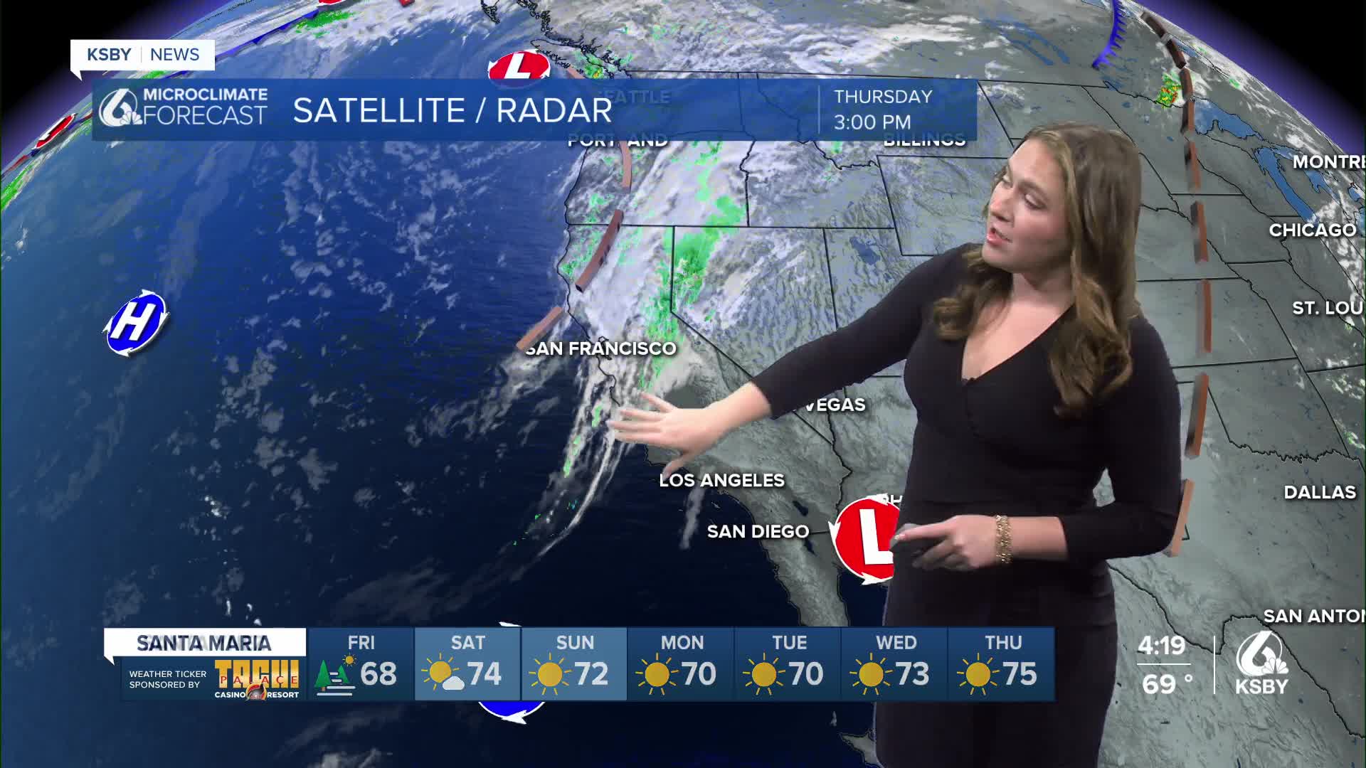 This weekend, the cold front will move on, and a brief warmup is headed our way. That means more sunshine for the region. 60s by the beach 70s for coastal valleys, and some 80s for the interior valleys.