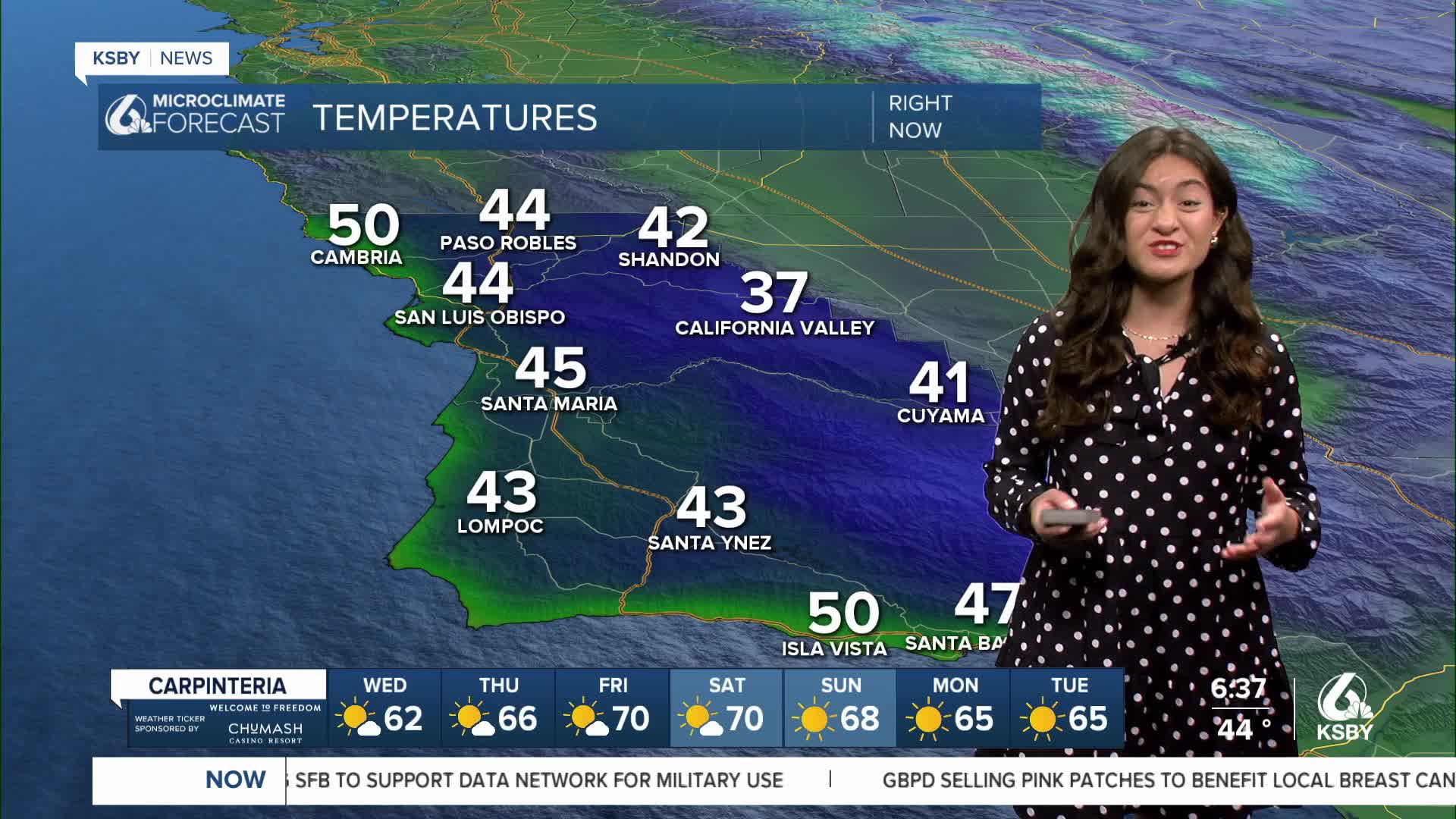 The cold front in our region has caused even our inland areas to have more frigid conditions. Our daytime temperatures will be around 60 degrees in all areas of the Central Coast.