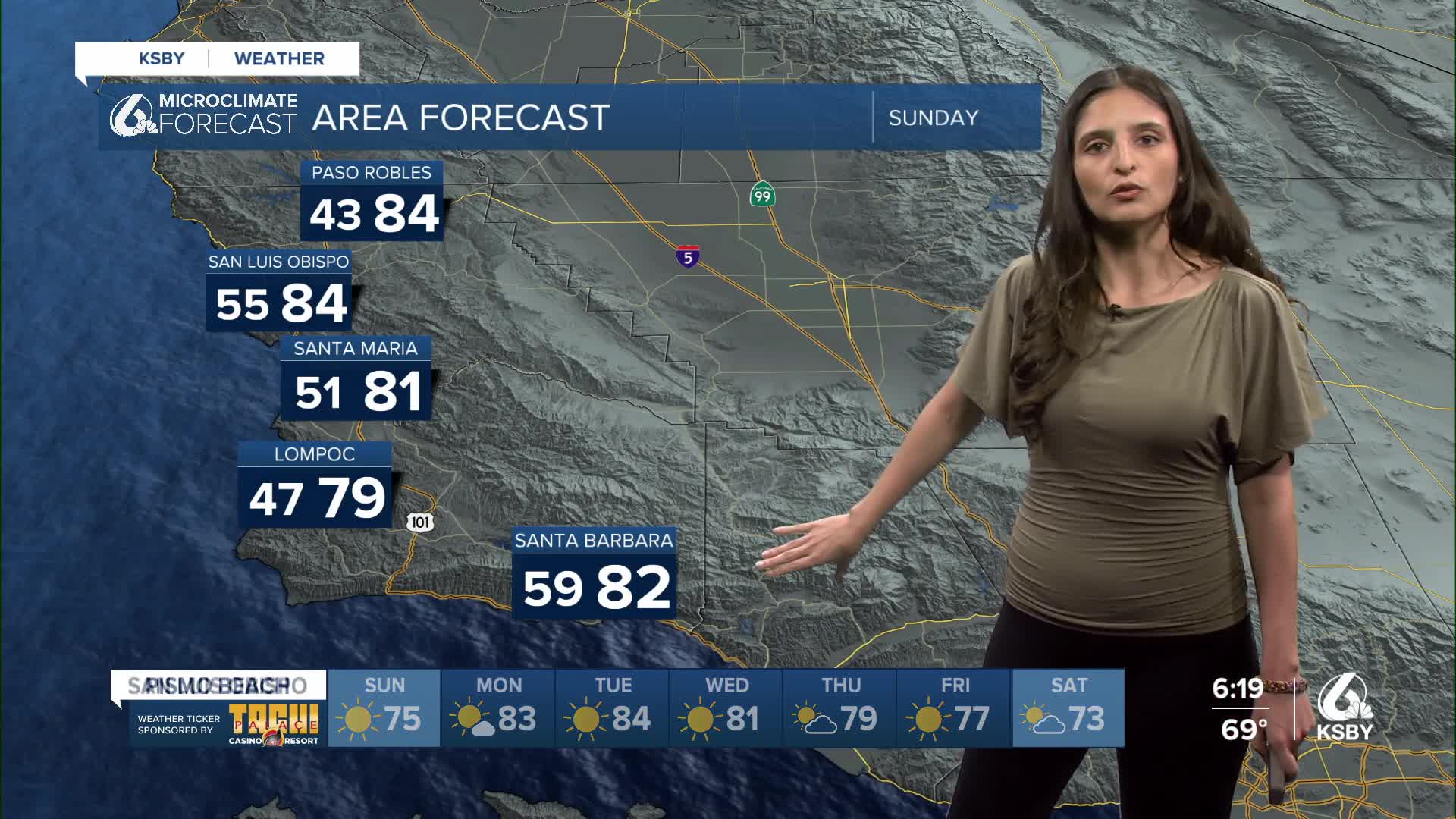 We got a much-welcomed break from the extreme we experienced throughout the week. The ridge of high-pressure responsible for it has temporarily weakened, allowing onshore flow to move in. These are the temperatures you can expect on Sunday, in the 80s and 70s across the region.