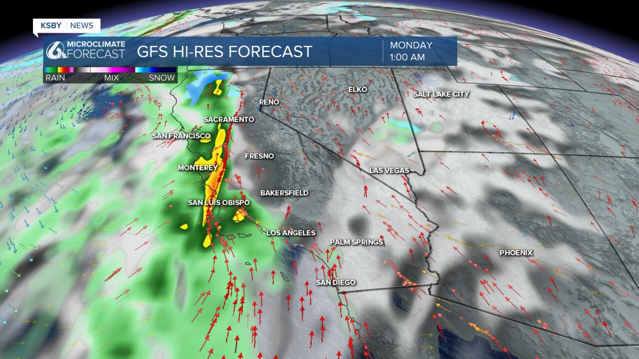 In fact, at least three separate storm systems are expected to move through the Central Coast next week. The first one looks to arrive later Sunday.