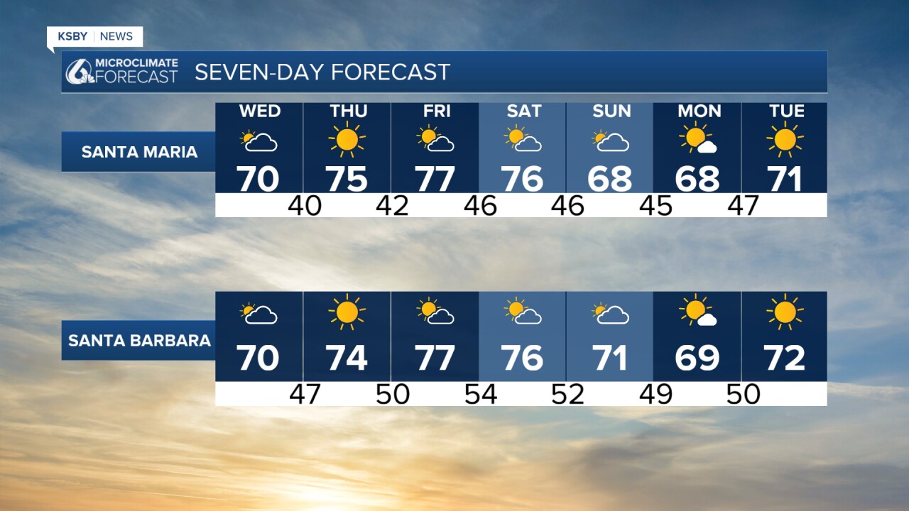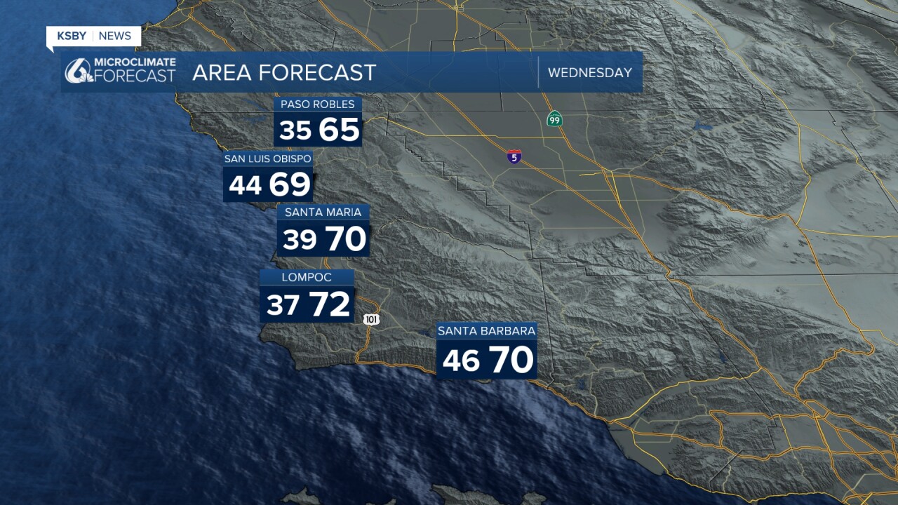 With the onshore breeze tonight into Wednesday morning, there may be some low clouds and fog along the Central Coast to start Wednesday. The wind turns offshore later in the day on Wednesday with some nice clearing.