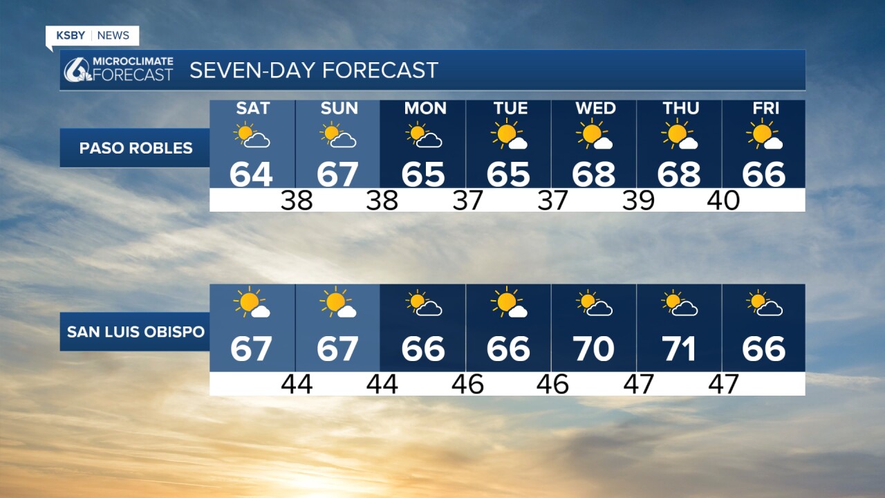 Temperatures for the region will be consistent into Saturday, mid-60s for most spots with lots of sunshine!