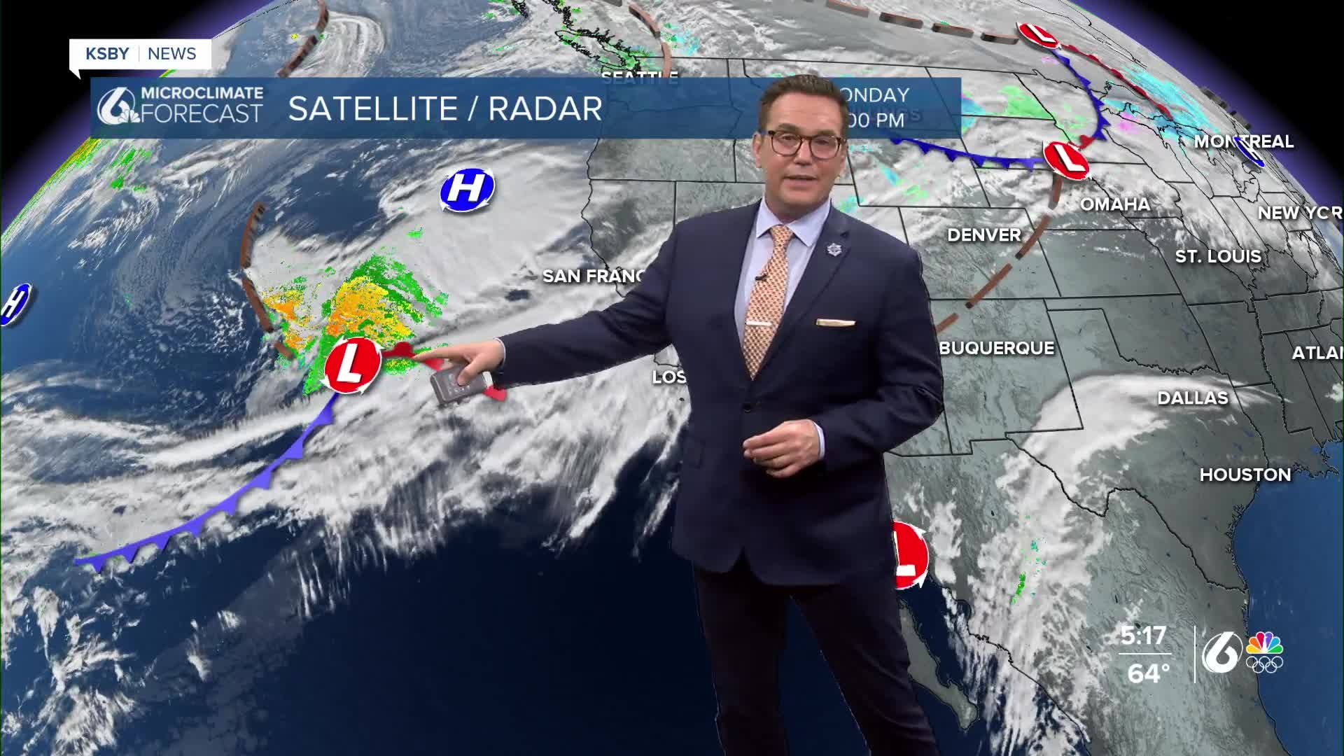 After a long dry stretch since early January, the pattern is shifting to allow Pacific storms onto the Central Coast. The first storm arrives pm Tuesday into Wednesday morning, with most rain falling overnight. The storm is not especially strong, but we could all see .50" of rain to amounts just below 1.00". Gusty south winds are likely 20 to 30 mph, especially overnight Tuesday, with southerly gusts of 50 mph possible in the interior valleys and the higher terrain. A wind advisory is in effect for interior areas from Tuesday afternoon through Wednesday afternoon. A Gale Warning has been posted for the Central Coast from 4 pm Tuesday until 3 am Wednesday.