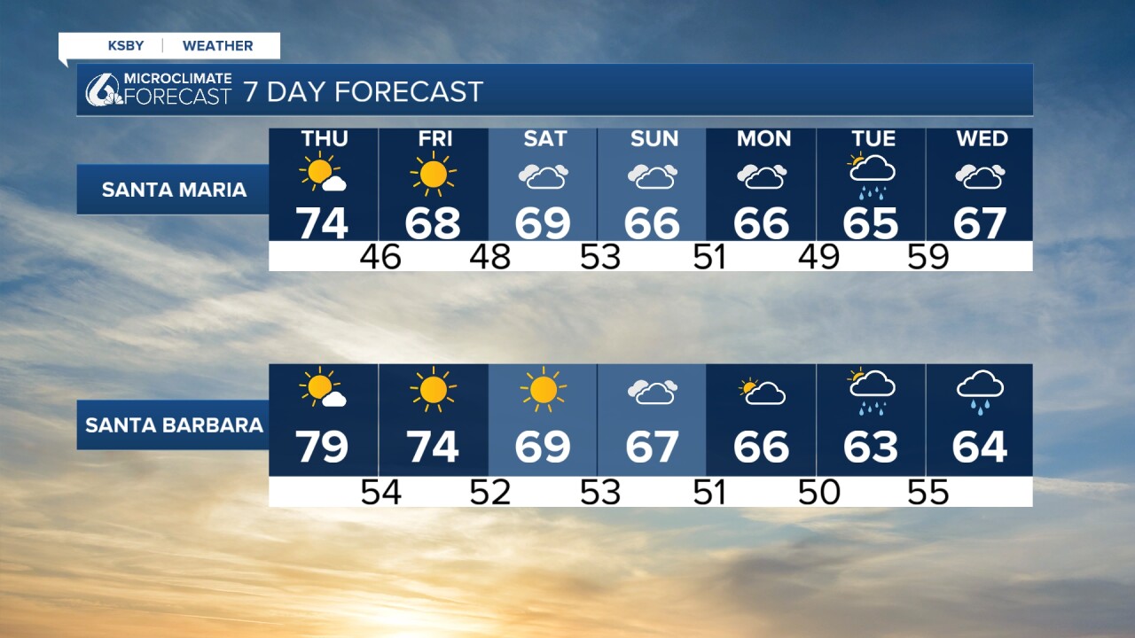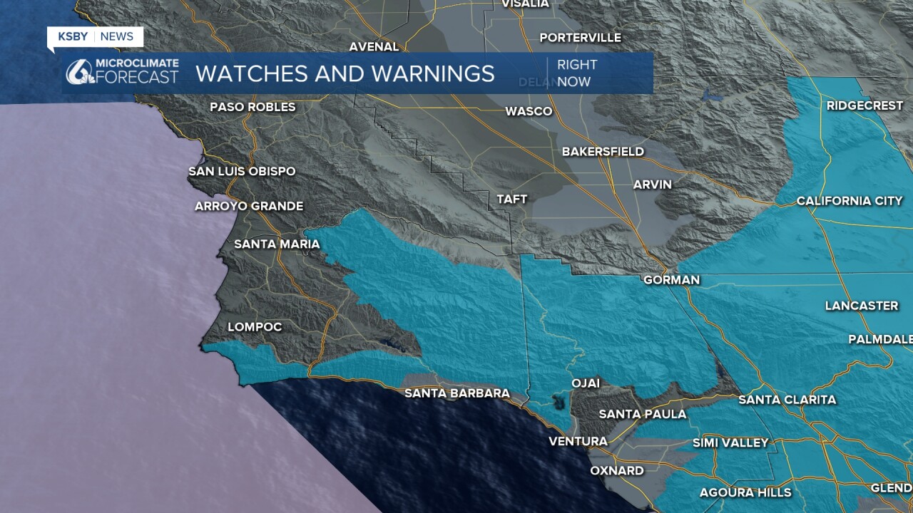There are a few advisories at this hour. These include a Wind Advisory for Santa Barbara County, as well as a Dense Fog Advisory for Santa Barbara. There is also a Small Craft Advisory in place, which expires Friday at 3:00 AM.