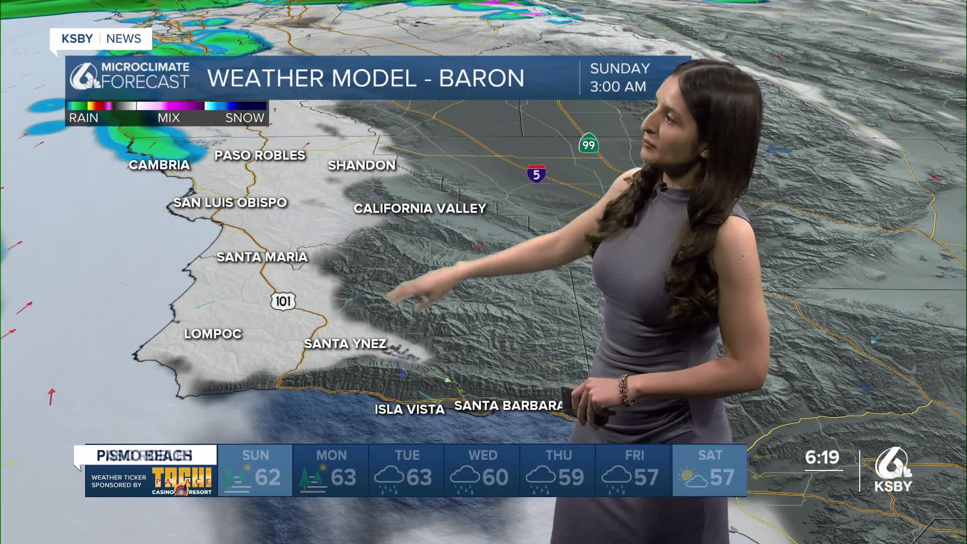 Antes de entrar en los detalles, les daré una versión más sencilla. Condiciones mayormente secas para el domingo y el lunes. Sí existe la probabilidad de que lluvias dispersas lleguen al noroeste del condado de San Luis Obispo el domingo. Aprovechen estos días para viajar hacia el sur de California o para formalizar un plan. La tormenta que estamos monitoreando está proyectada a llegar a la Costa Central el martes.