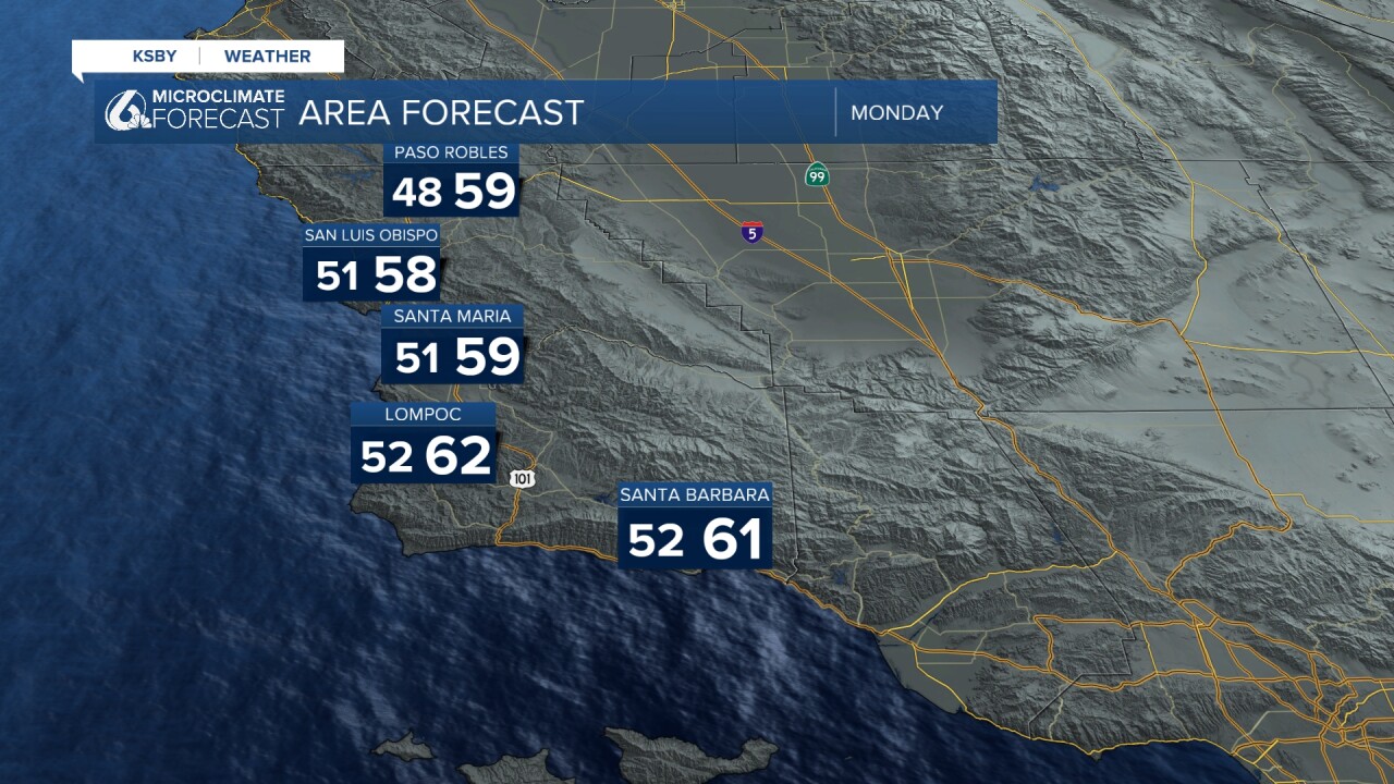 Now, back to this imperfect break. Don't expect this slight pause to last! In a few hours, there will be even more rain. The low-pressure system that has been rotating over our region for the last couple of days will be replaced by a new system. Our model shows this new low-pressure system will arrive on the Central Coast on Monday between 2:00 to 4:00 AM.