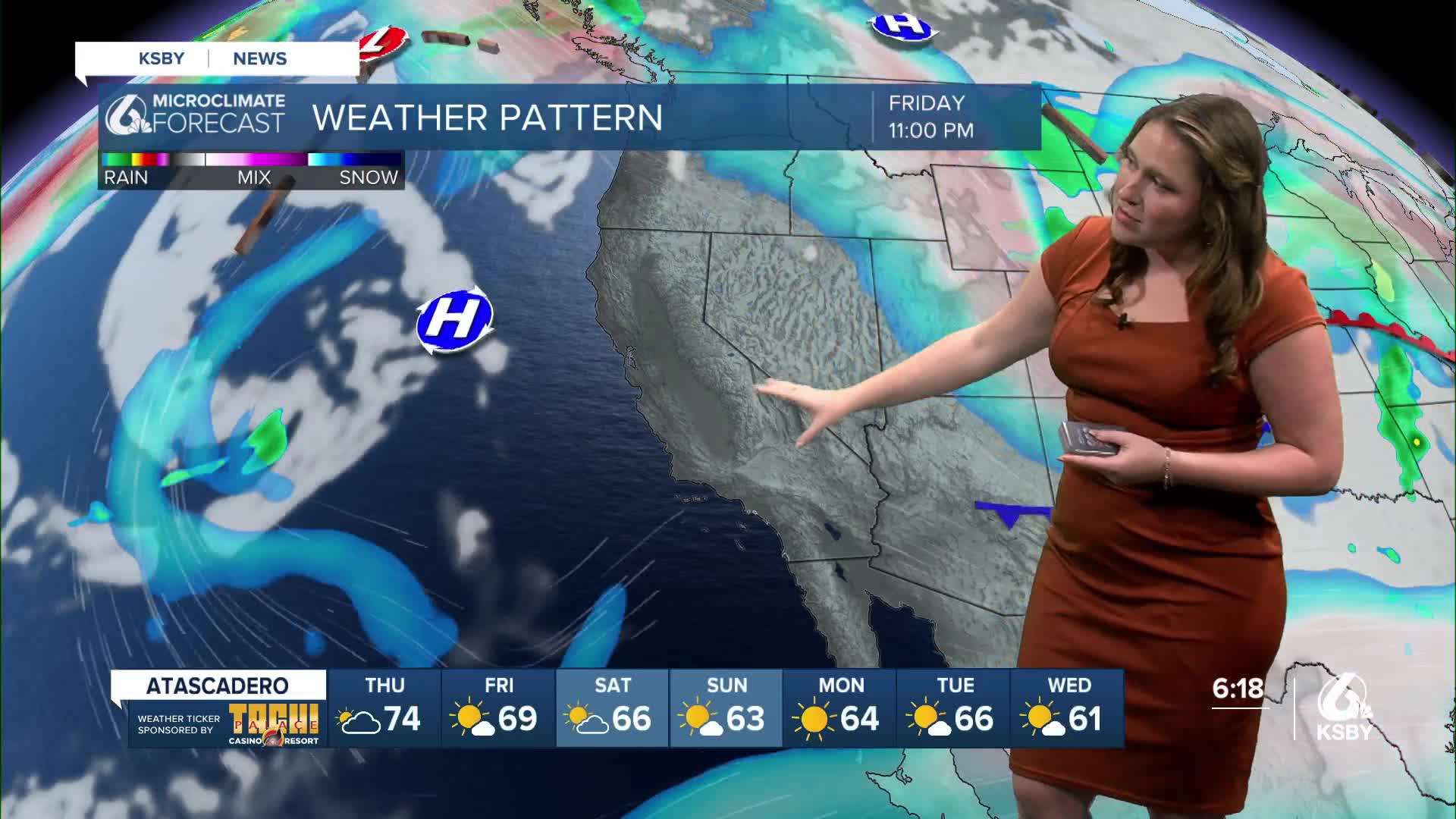 The high pressure that has brought us the great weather is still here for Thanksgiving. Some offshore winds will be a concern for coastal San Luis Obispo County, conditions will be similar to Wednesday.