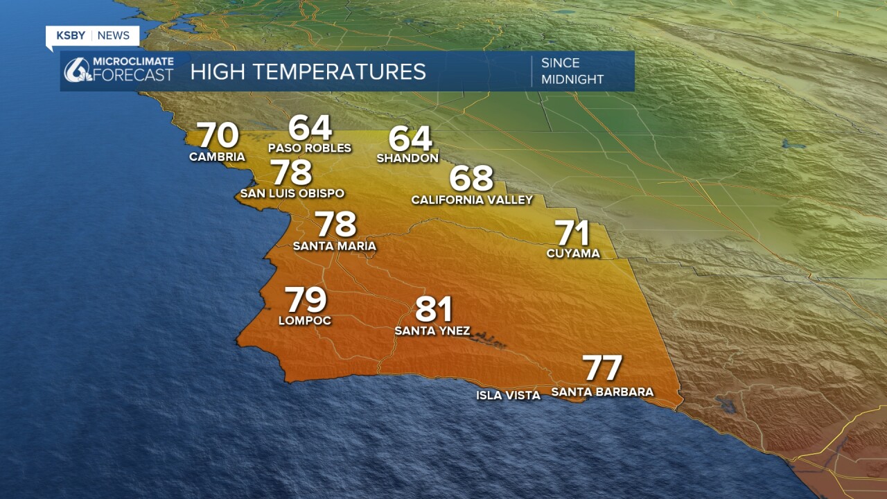 Highs today climbed into the upper 70s for many locations, with a few spots hitting the 80s. For a little bit of context, the 'normal' high temp for Santa Maria for this time of the year is 68 degrees.