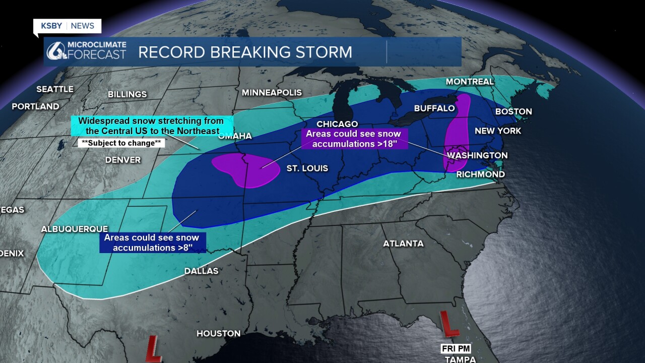 Further south the concern becomes freezing rain and sleet. This is where the worst of the storm is expected as roads will be treacherous and widespread power outages are likely.