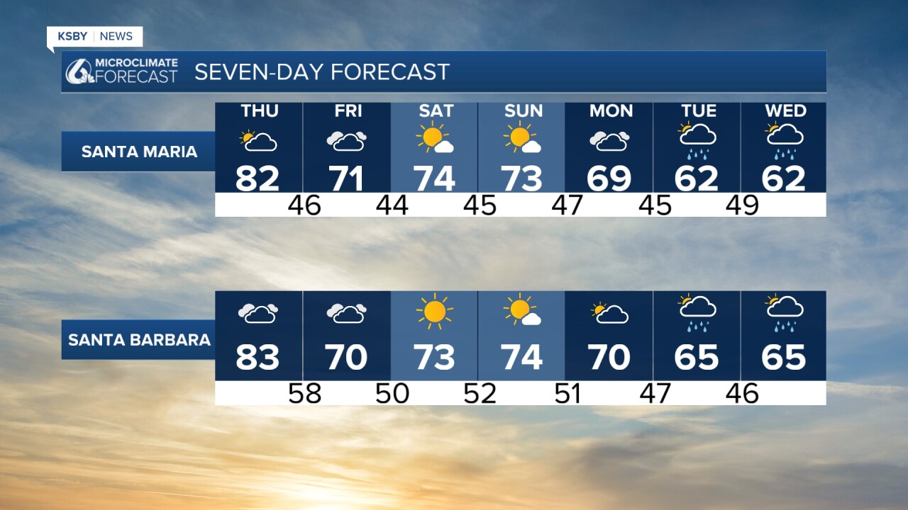 into the 60s and low 70s. The high temperatures will still be above our average high of 65 degrees in San Luis Obispo.