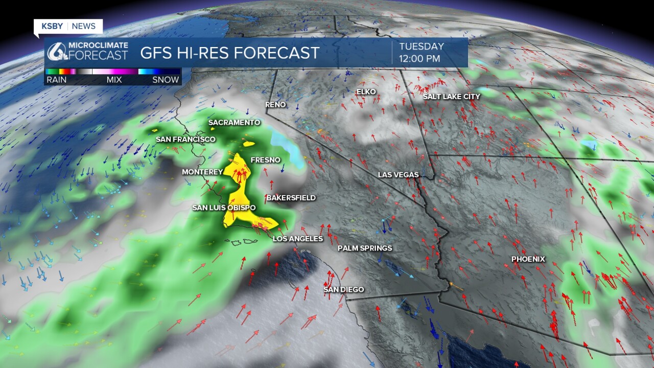 The storm will get here late Monday into Tuesday and will first bring gusty winds and a band of heavy rain. From there, the core low pressure will pass over the coast, and we could pick up a bit of wrap around moisture. The rain chances are best Tuesday and Wednesday, but there is potential through Thursday morning.