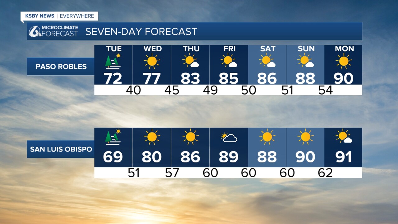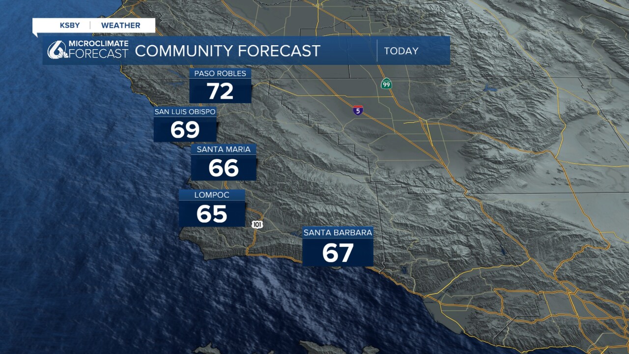 Some dense fog this morning is limiting visibility in the Paso Robles area. That is mainly due to winds from the north bringing in cloud cover that is getting trapped behind the Cuesta Ridge. That will clear out quickly, and we will see a cloudy morning and partly cloudy afternoon with temps similar to Monday.