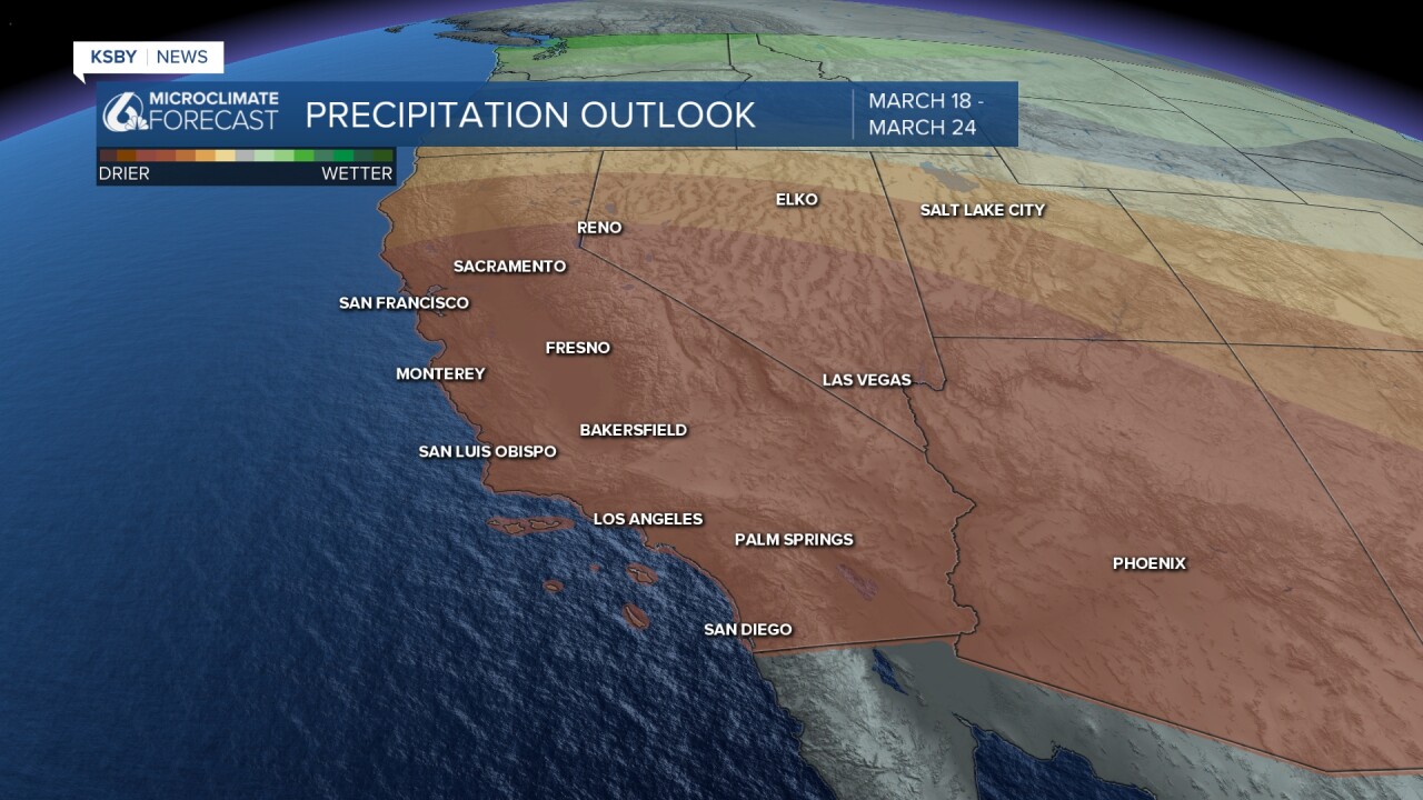 Even past the 7-day forecast the ridge of high pressure, hot weather, and dry conditions will continue. Here is a look at what we can expect from Next Tuesday through March 24th.