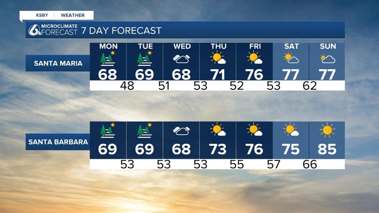 A high surf advisory continues to be in place for San Luis Obispo and portions of Santa Barbara counties. This advisory is scheduled to expire on Tuesday at 3:00 AM.